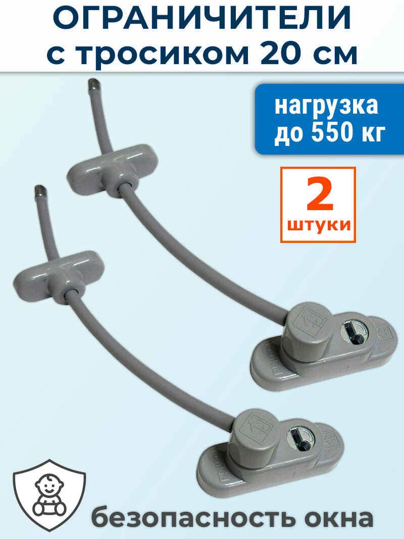 Лот 2 шт: Детский замок Пенкид PenKid - ограничитель окна с тросиком серый интересное: