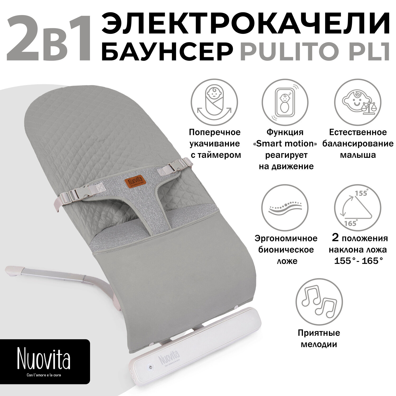 Купить Шезлонг с электронной функцией качения Nuovita Pulito PL1 (Grigio/Серый)