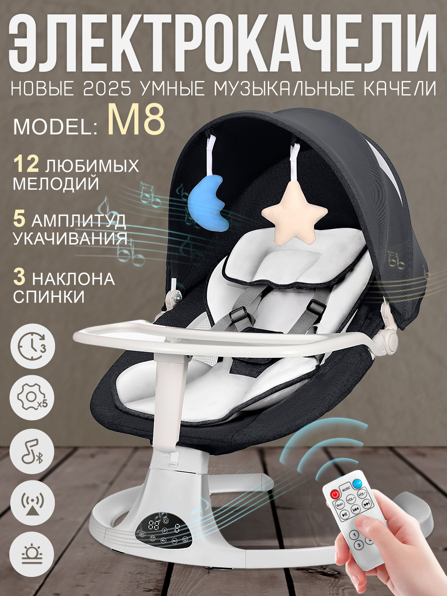 Детские электрокачели шезлонг Dearest M8 Black 2025, электронная качель интересное: