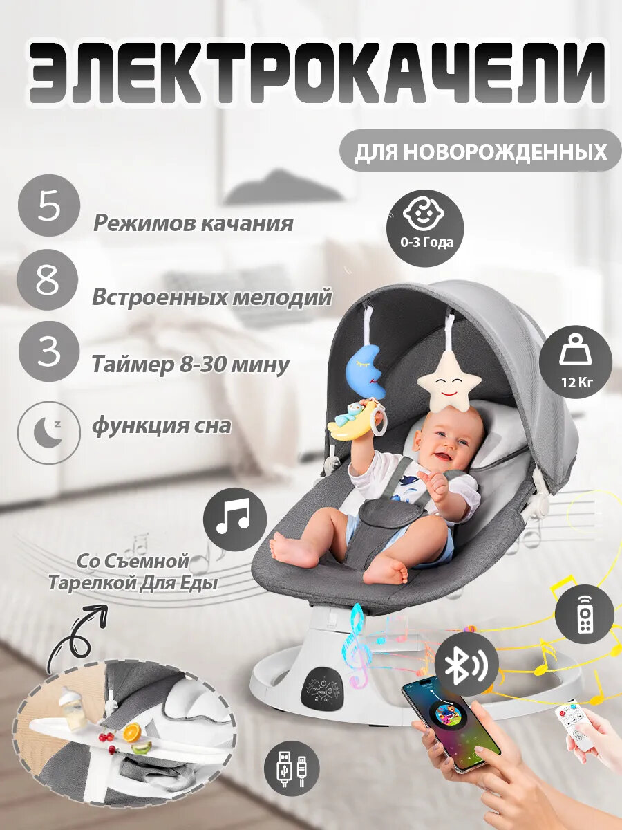 Умное детское кресло-качалка с Bluetooth, 2 игрушками, 7 мелодиями и регулируемым углом – комфорт для малыша интересное: