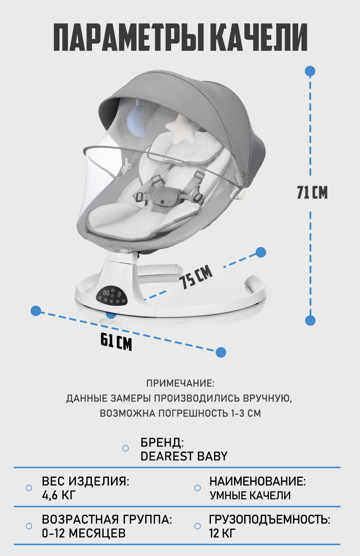 Электронные качели для новорожденных Dearest Deluxe-2 Dark Grey White 2024, электронные качели шезлонг