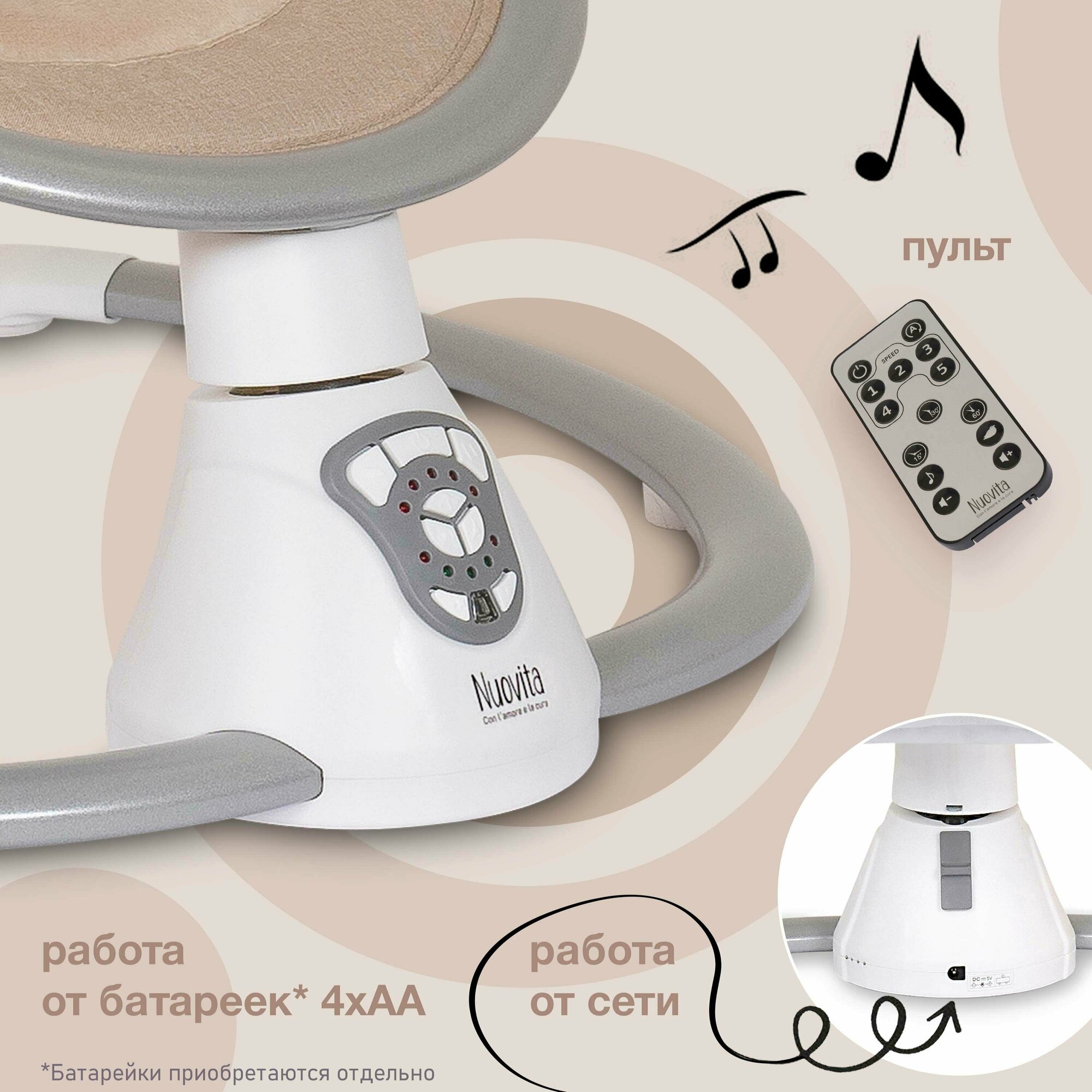 Электрокачели для новорожденного Nuovita Mistero MS4 (Бежевые круги) интересное:
