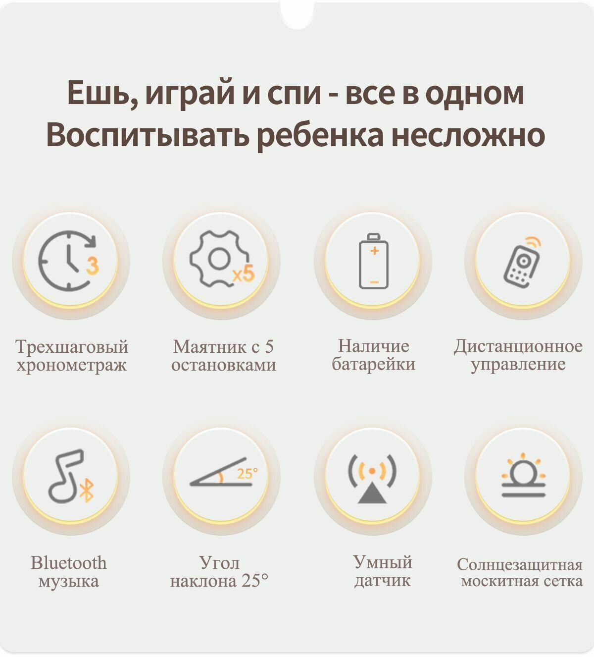 Электронный шезлонг качели Dearest Deluxe-2 White Yellow 2024, умное укачивание