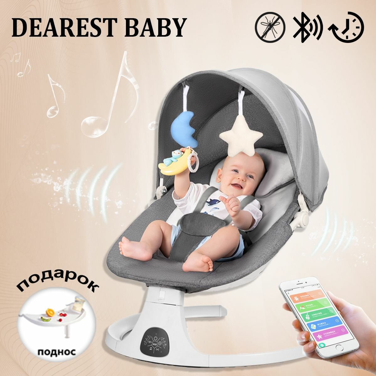 DEAREST BABY Электрокачели для новорожденного, Кресло-качалка, шезлонг для новорожденных от 0+, с игрушками Bluetooth