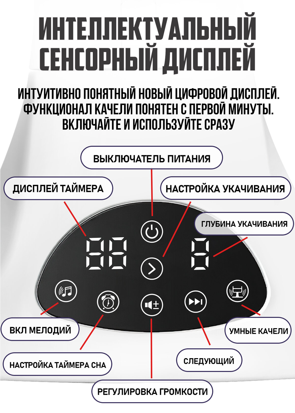Электронный шезлонг качели Dearest Deluxe-2 White Grey 2024, умное укачивание