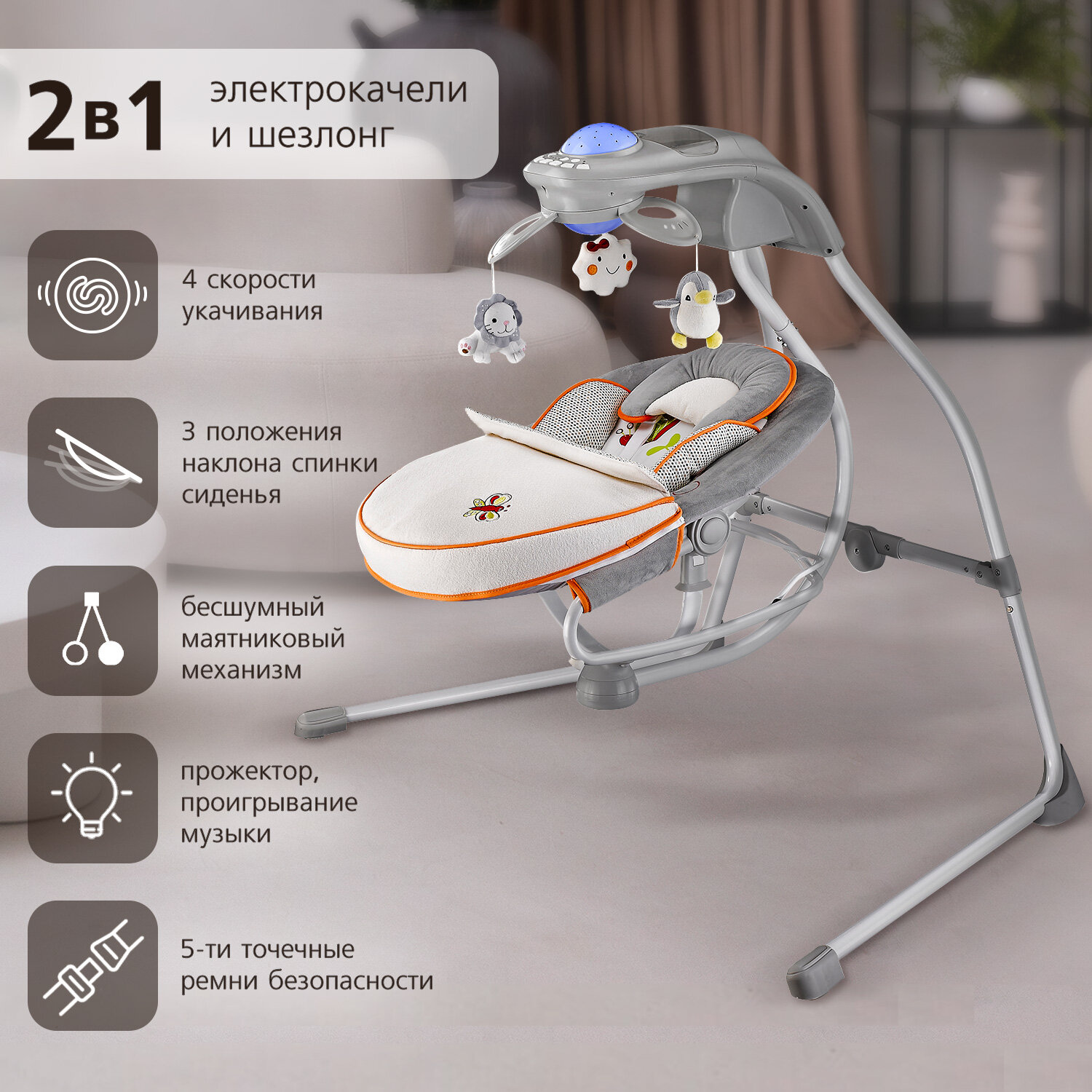 Электрокачели для новорожденных Nuovita Casseta, шезлонг качалка (Tramonto / Закат) интересное: