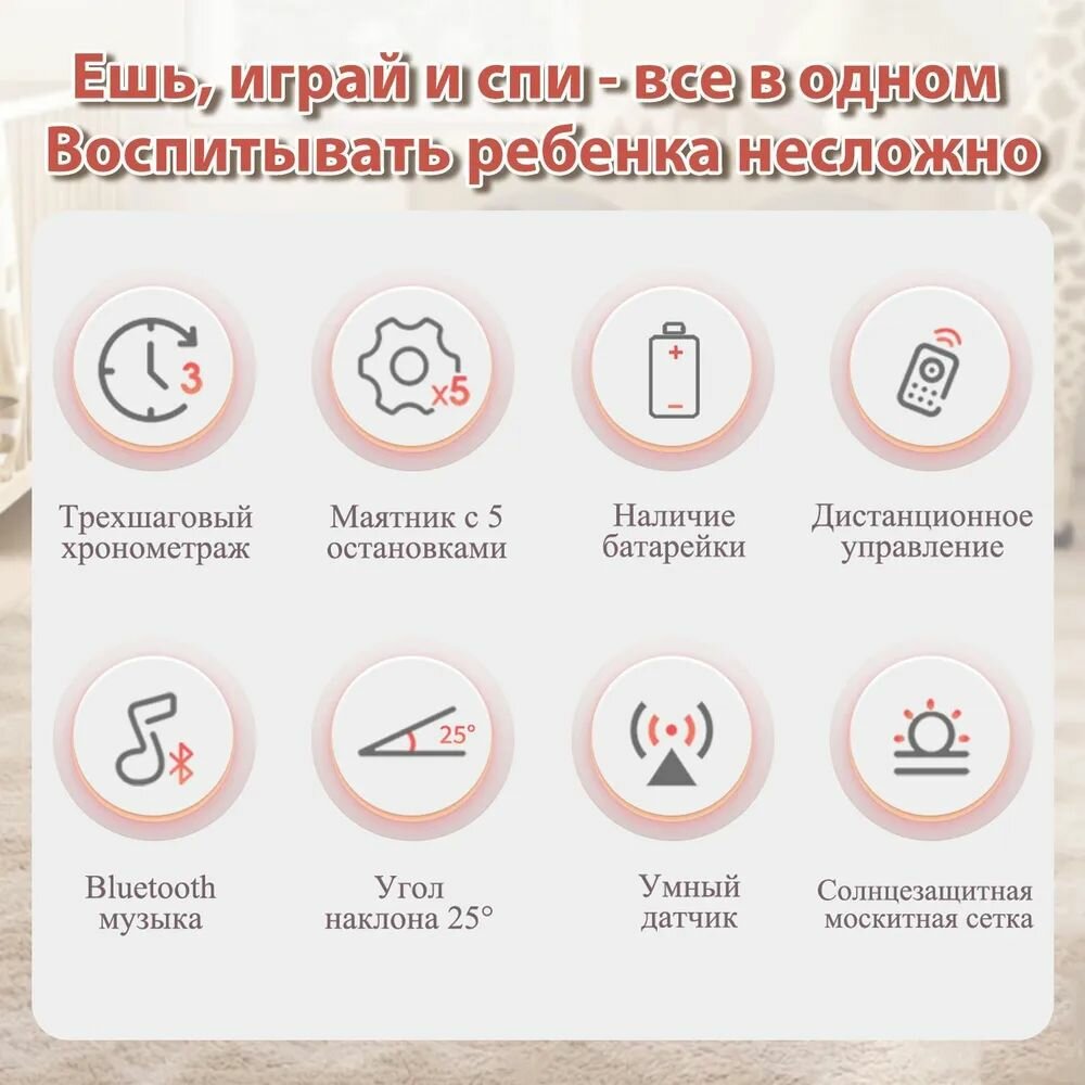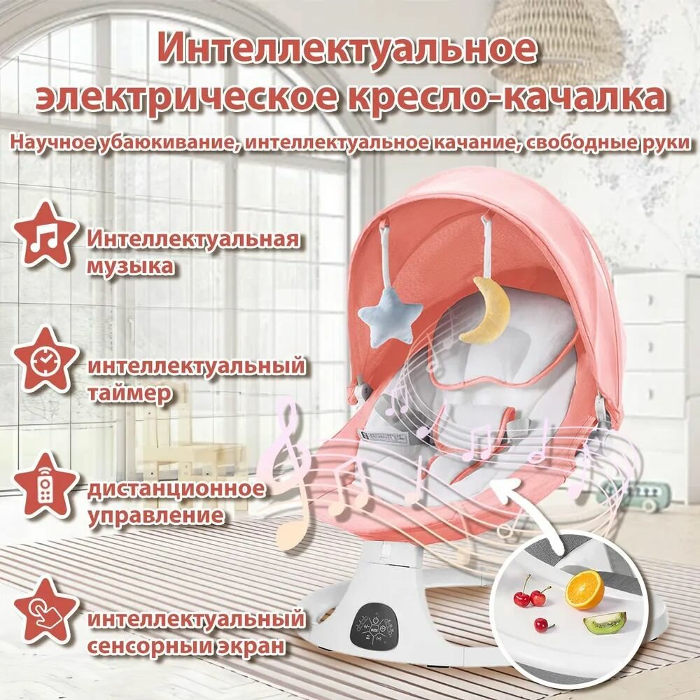 Электрокачели для новорожденного, Кресло-качалка, шезлонг для новорожденных от 0+, с игрушками Bluetooth, серый интересное: