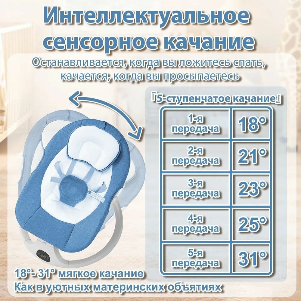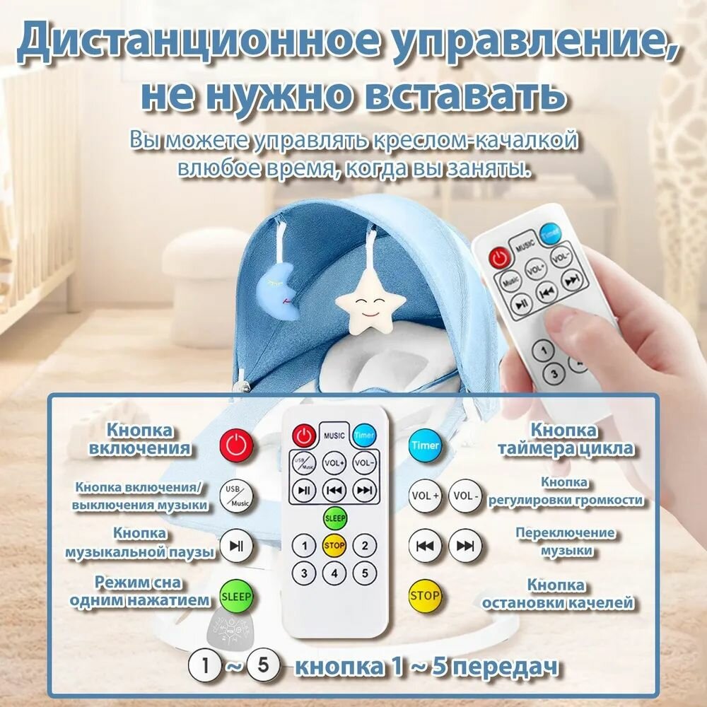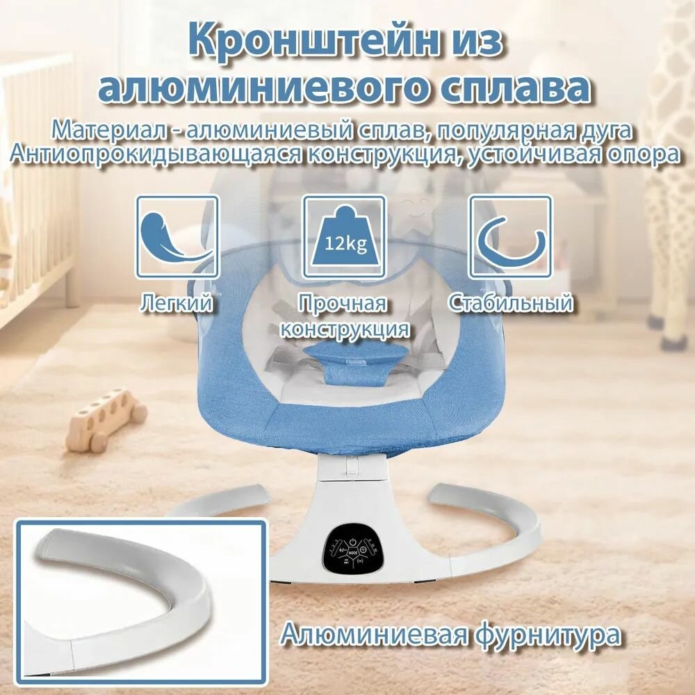 Электрокачели для новорожденного, Кресло-качалка, шезлонг для новорожденных от 0, с игрушками Bluetooth, синий интересное: