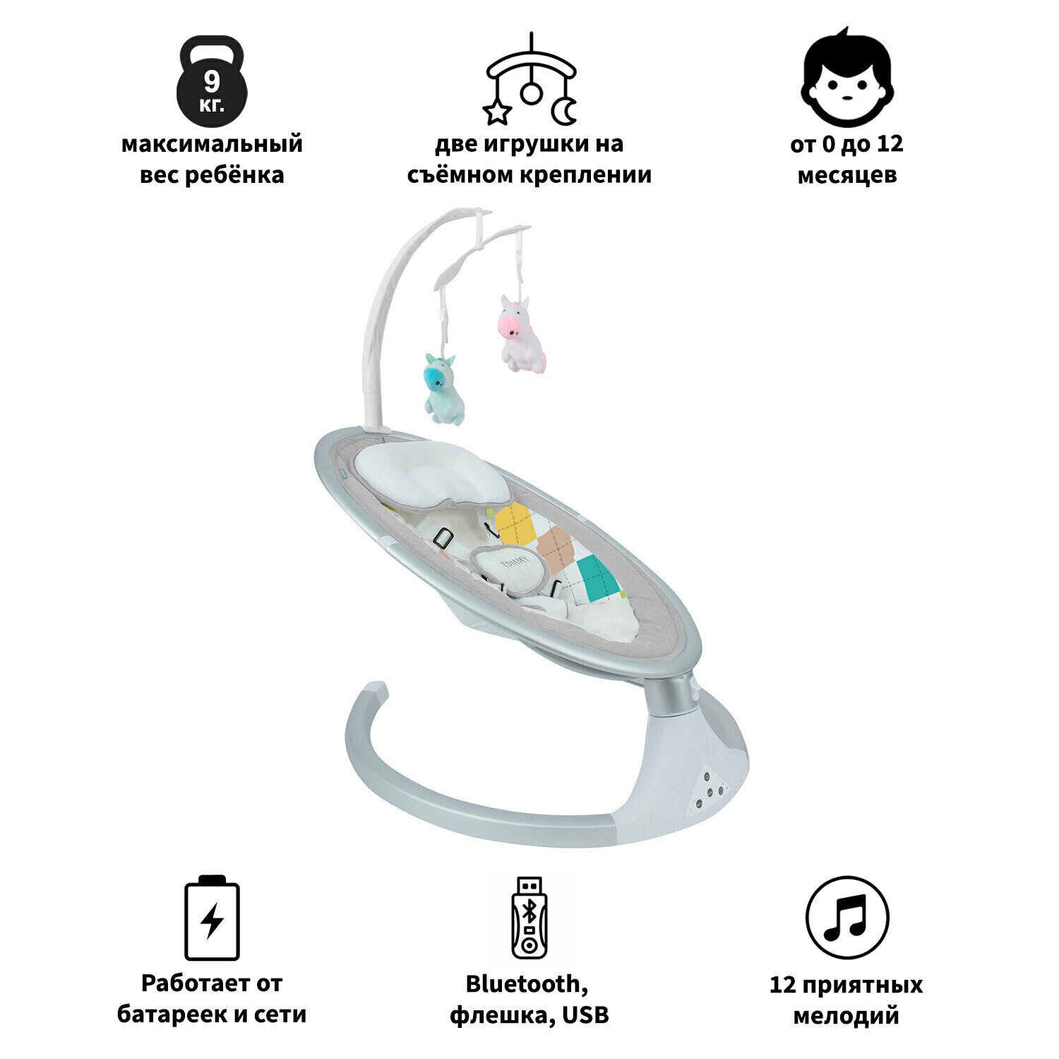 СохранитьЭлектрокачели для новорожденных 0+ Tommy SW 202 светло-серый интересное: