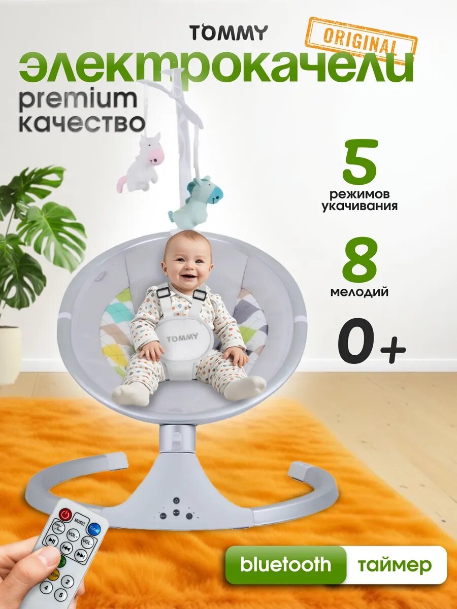 Купить Электрокачели для новорожденных 0+ Tommy SW 202 светло-серый