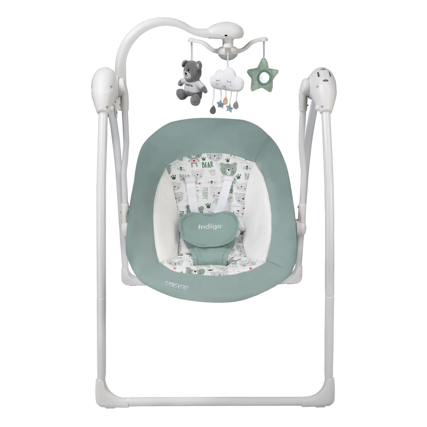 Купить Электронные качели TEDDY (0-9 кг), с адаптером, п/у,12 мел,5 скоростей, москитка(упак.2шт.)(Indigo) (зеленый)