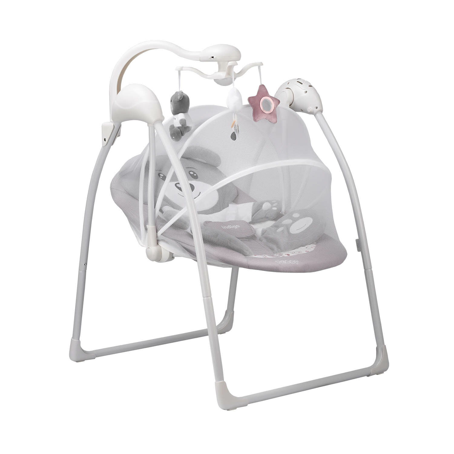 Электронные качели TEDDY (0-9 кг), с адаптером, п/у,12 мел,5 скоростей, москитка(упак.2шт.)(Indigo) (серый)