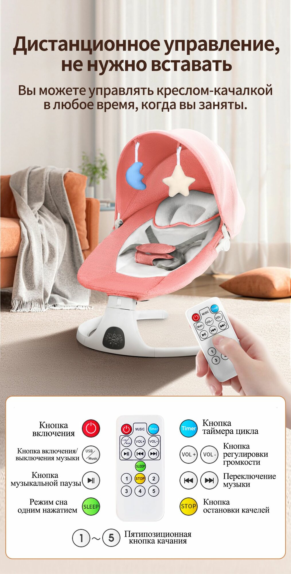 Электрокачели для новорождённого, для детской комнаты, до 12 кг, с пультом управления, идеальное подарок на 2025 год. интересное: