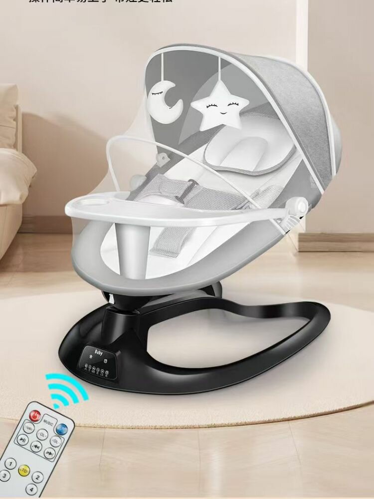 Купить Шезлонг для новорожденных от 0, электронный, музыкальный серый - черный