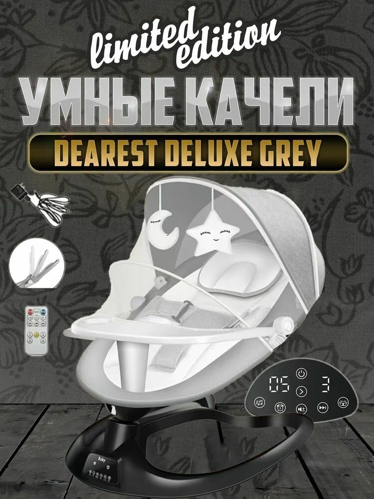 Шезлонг для новорожденных от 0, электронный, музыкальный серый - черный интересное:
