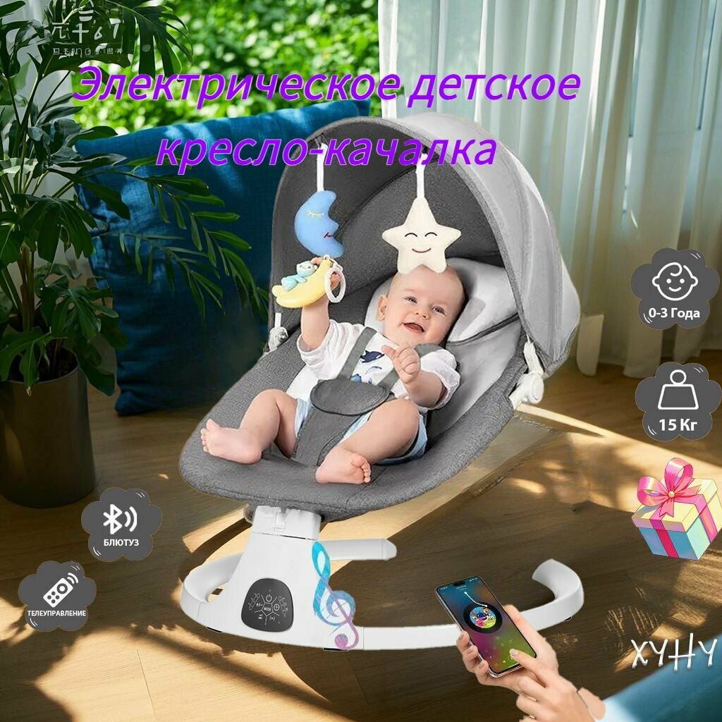Умные электрические качели для новорожденных, музыка по Bluetooth, подарочные игрушки серый