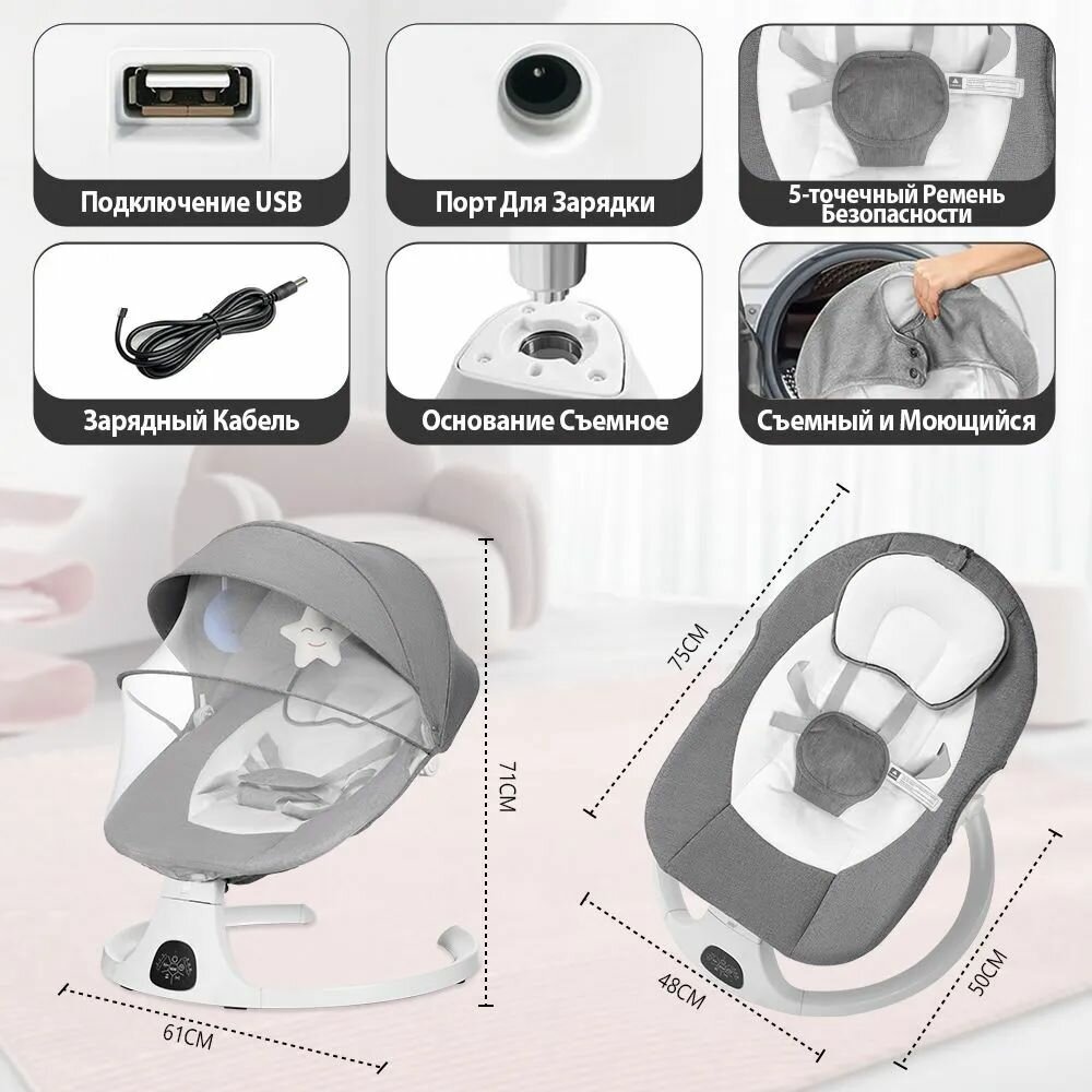 СохранитьЭлектрокачели Для Новорожденных от 0 до 3 лет, Качалка Для Новорожденных до 15 кг. S0008-Max, Серый интересное: