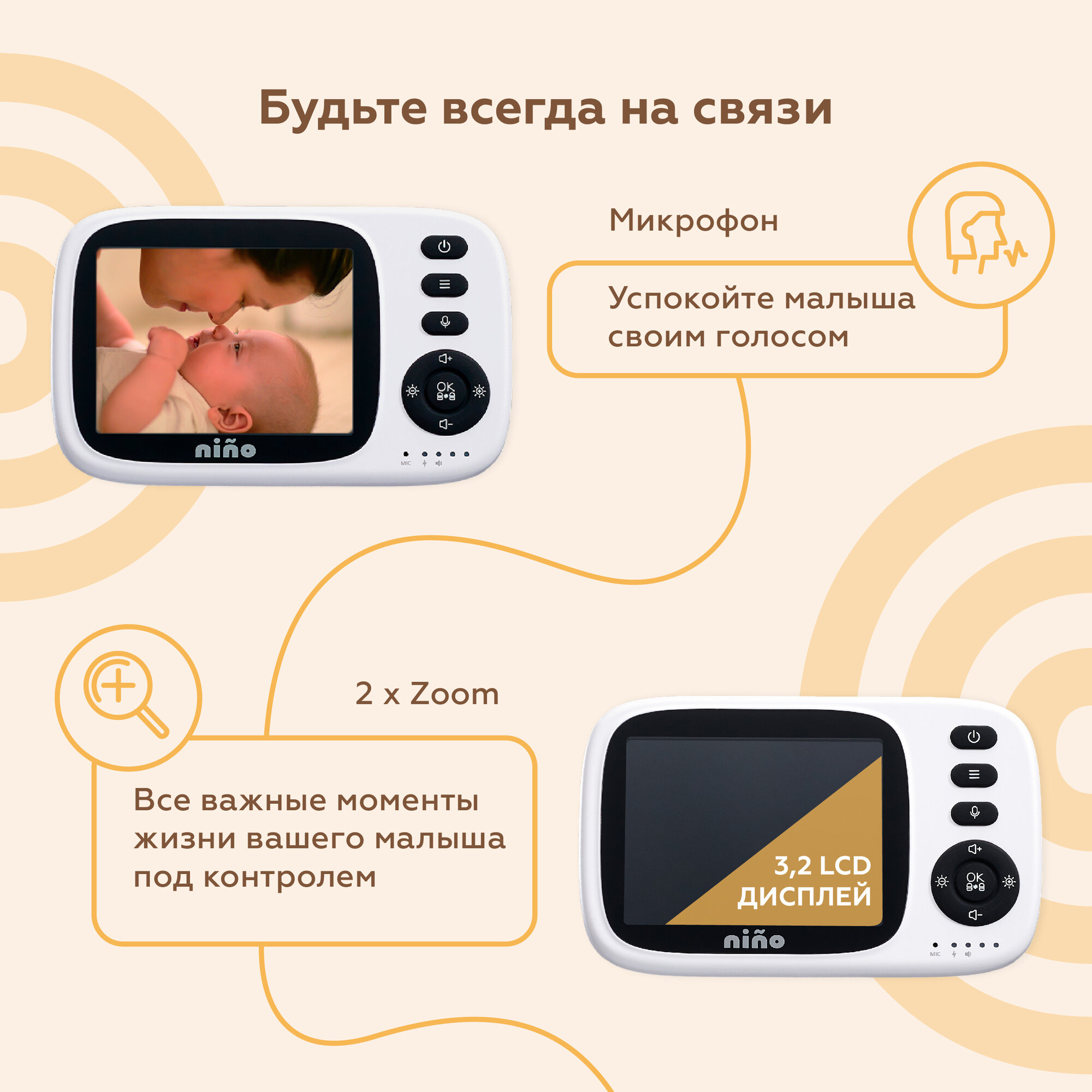 Видеоняня nino MC632A-PTZ, беспроводная, с монитором интересное: