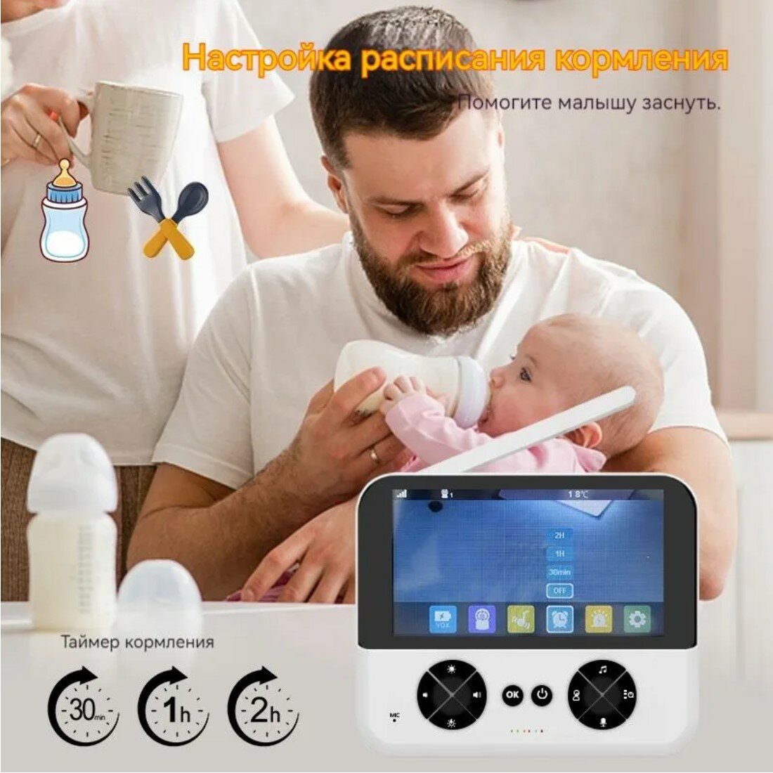 Видеоняня, видеоняня с камерой, baby видеоняня, двухсторонняя связь, микрофон, ночной режим, HD качество, 4.3 дюйма дисплей, белый интересное: