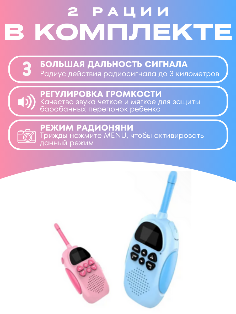 Комплект игровых раций для детей 8 мелодий, радионяня дальность 3 км. интересное: