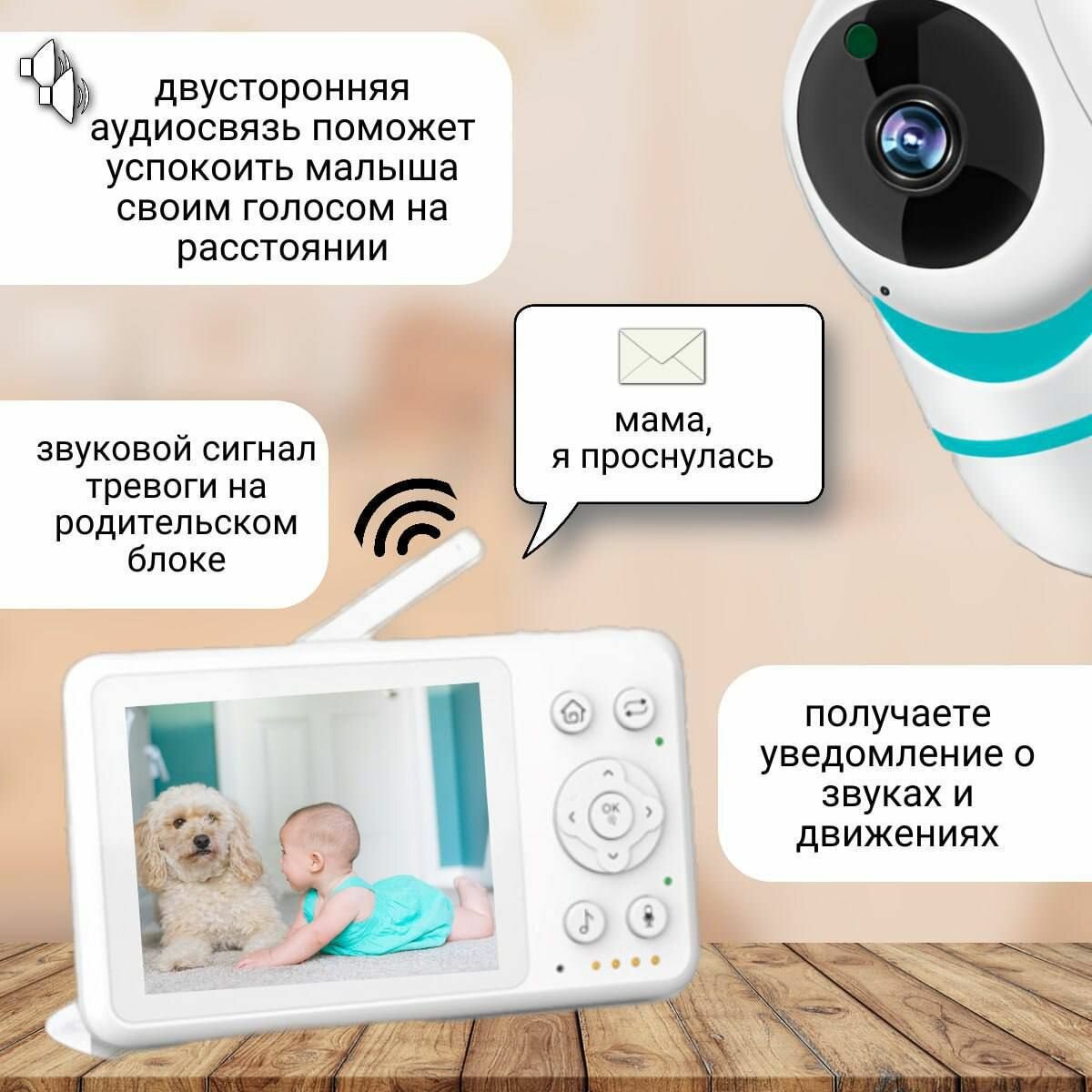Видеоняня беспроводная wifi / baby monitor /камера видеонаблюдения поворотная с монитором интересное: