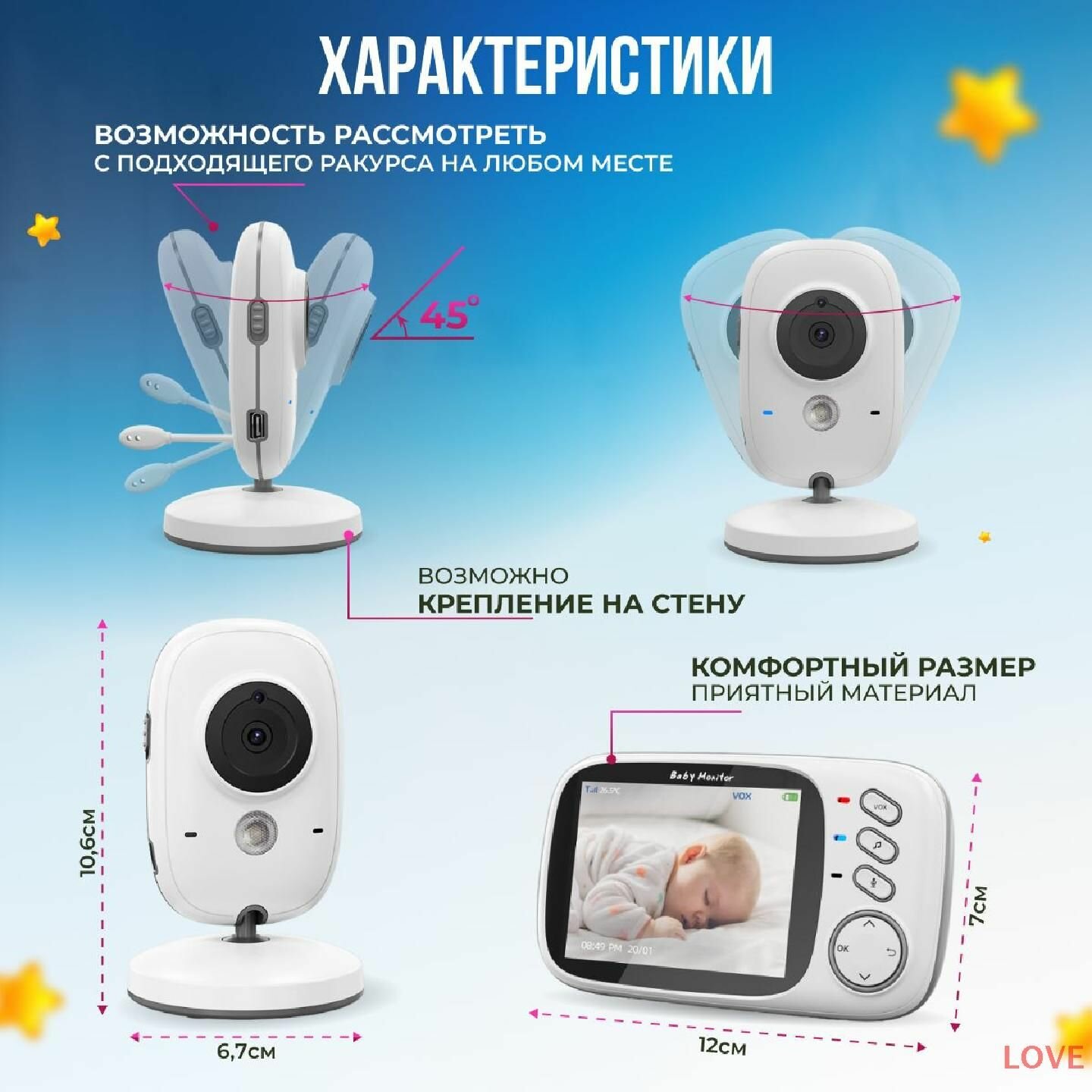 Беспроводная видеоняня Baby Monitor VB603 с радиусом действия до 300 м. / голосовая активация, термометр интересное: