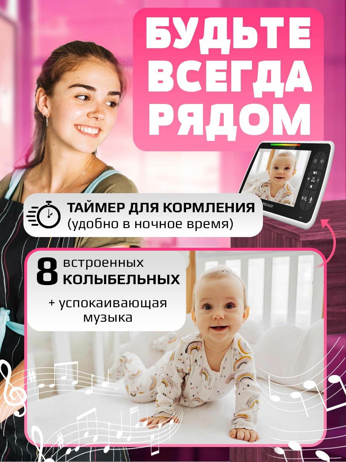 Видеоняня беспроводная с монитором и держателем, няня с инфракрасной подсветкой ночного видения интересное: