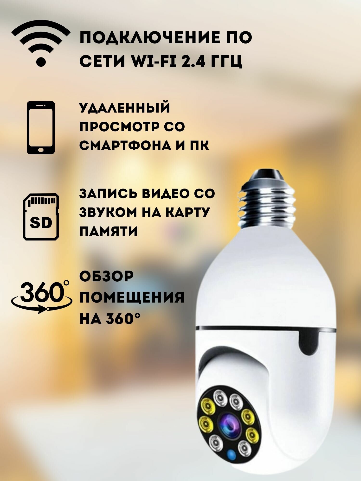 Беспроводная панорамная IP Wi-Fi камера лампочка видеонаблюдения с поворотом на 360 градусов интересное: