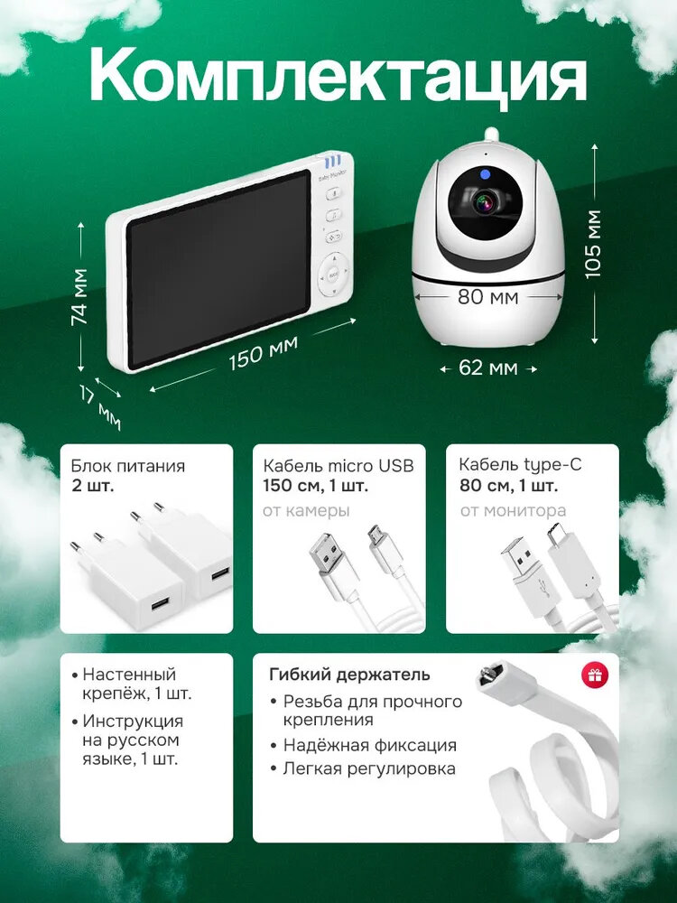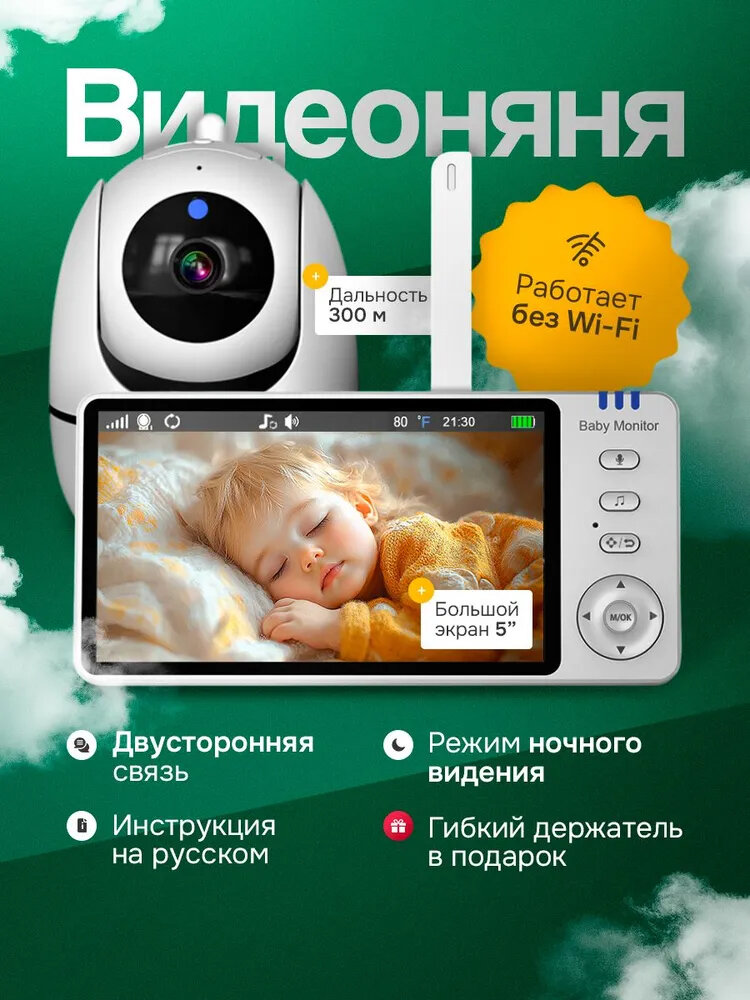 Видеоняня беспроводная / Радионяня / Камера видеонаблюдения для новорожденных HD