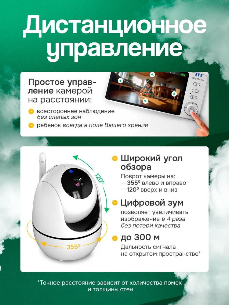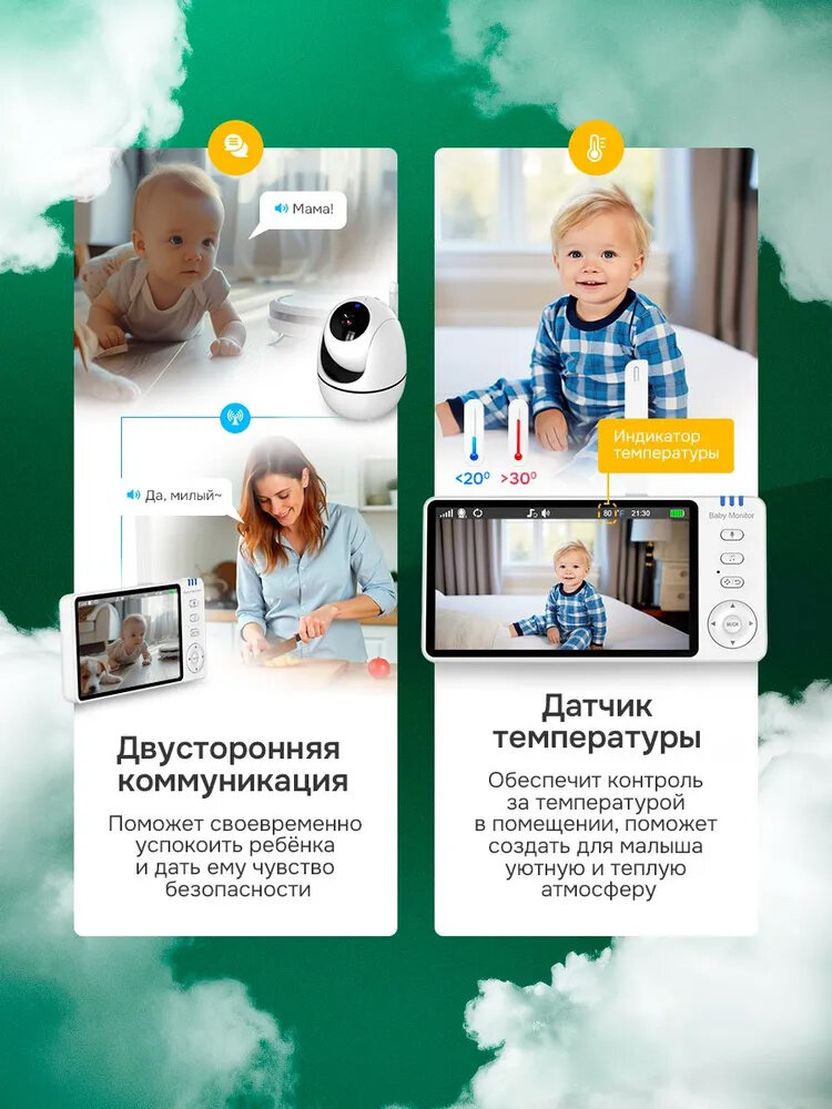 Видео няня с инфракрасным зрением, определением температуры и двухсторонней связью интересное:
