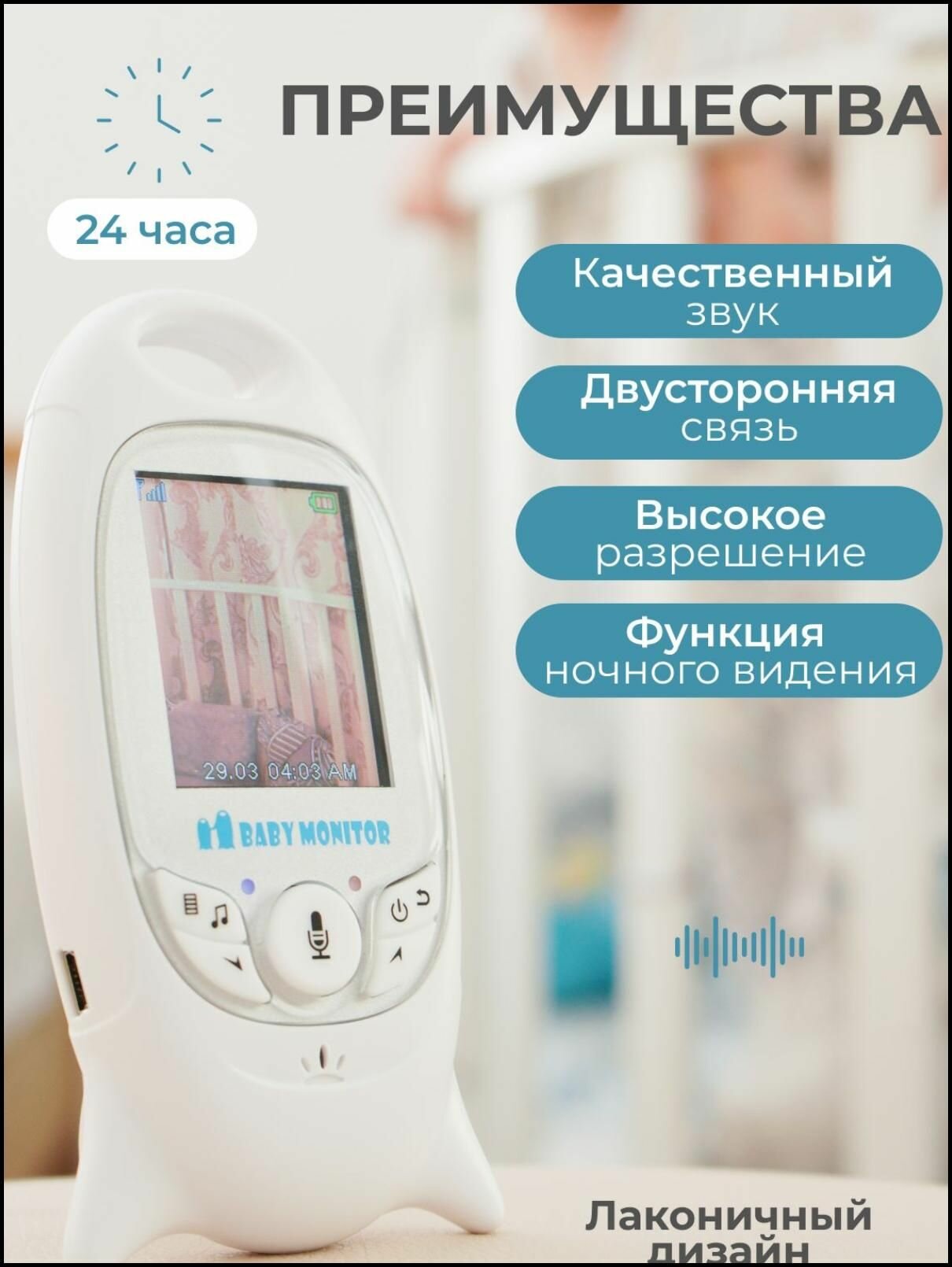 Видеоняня беспроводная / Радионяня / Камера видеонаблюдения для новорожденных HD