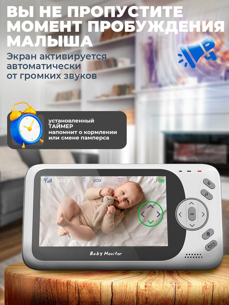 Видеоняня беспроводная, поворотная, цветной экран 4,3 высокого разрешения, двусторонней аудиосвязью с режимом ночного видения интересное: