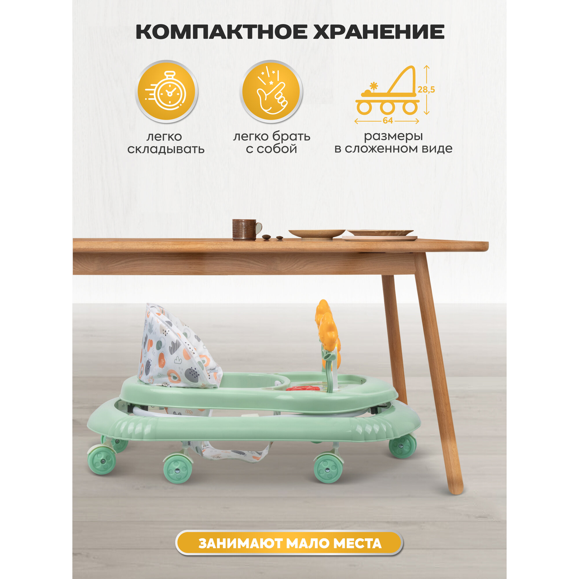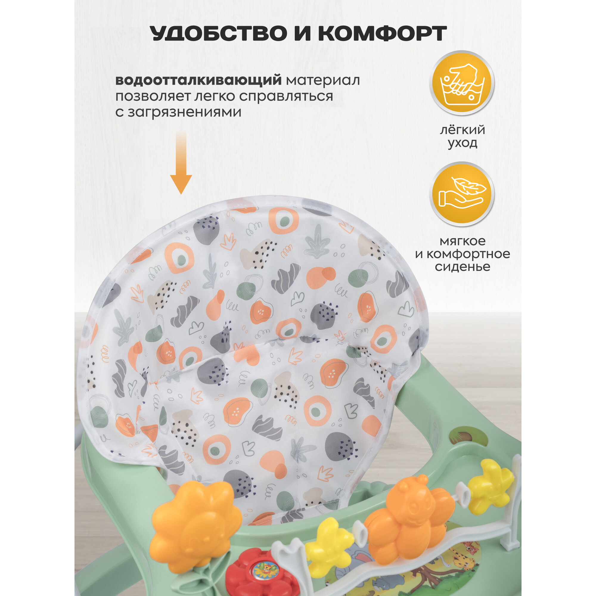 Ходунки детские музыкальные Indigo Fly с игровой панелью, 7 колес, зеленый интересное: