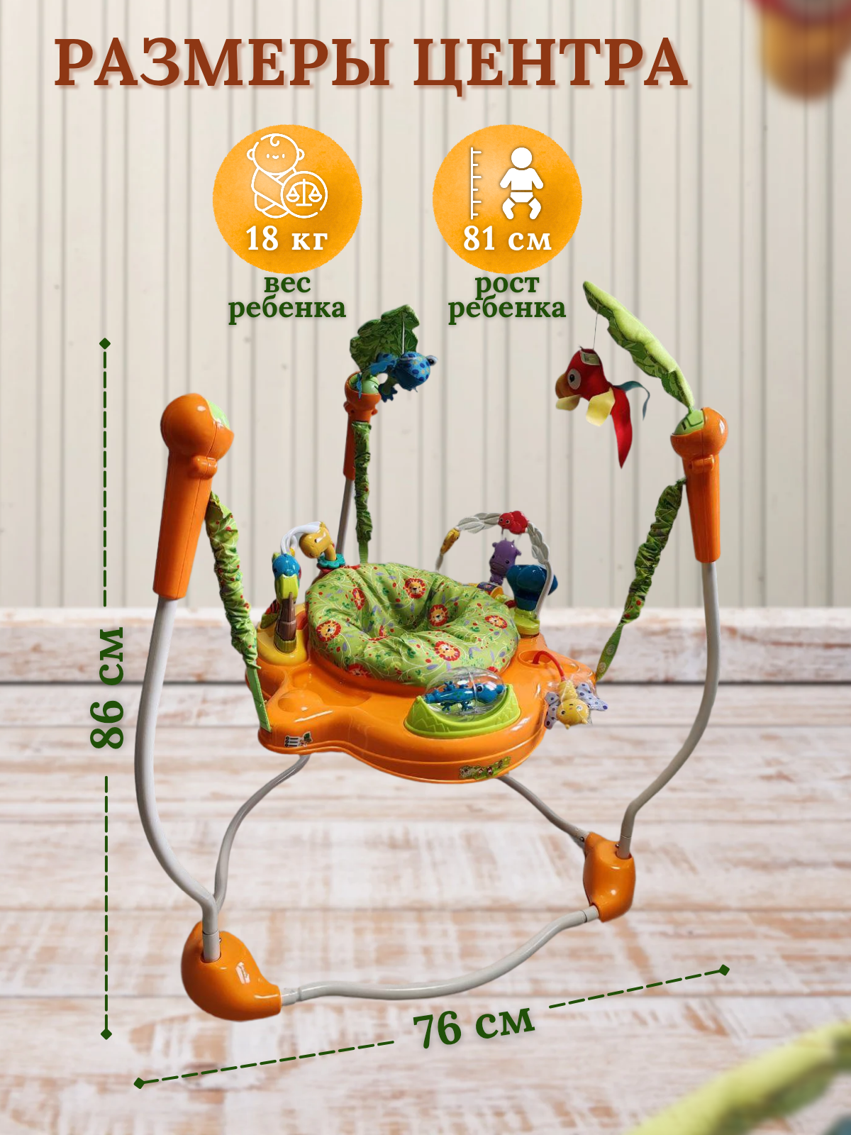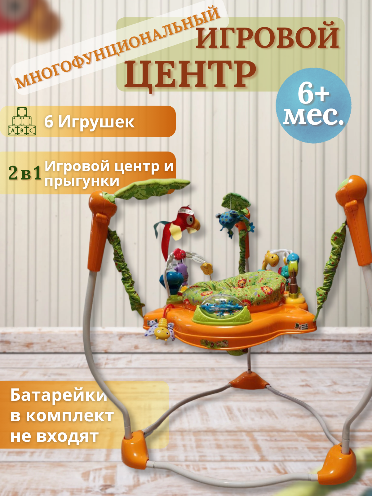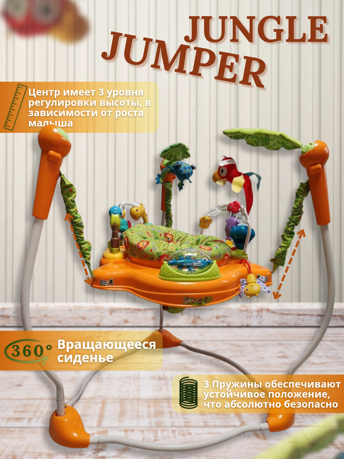 Прыгунки - Игровой центр Konig Kids Jungle Jumper, прыгунки, для детей, 0-18кг, оранжевый, зелёный интересное: