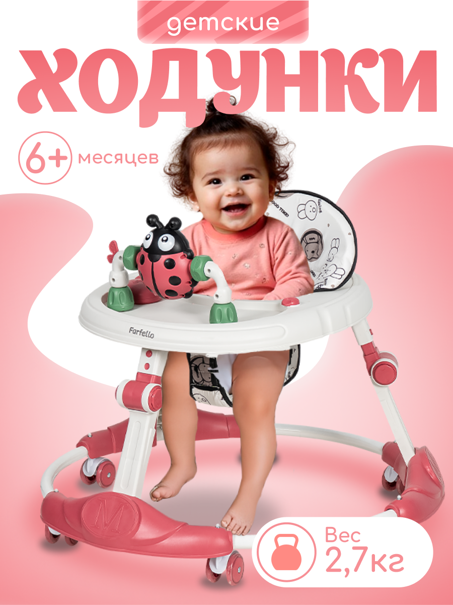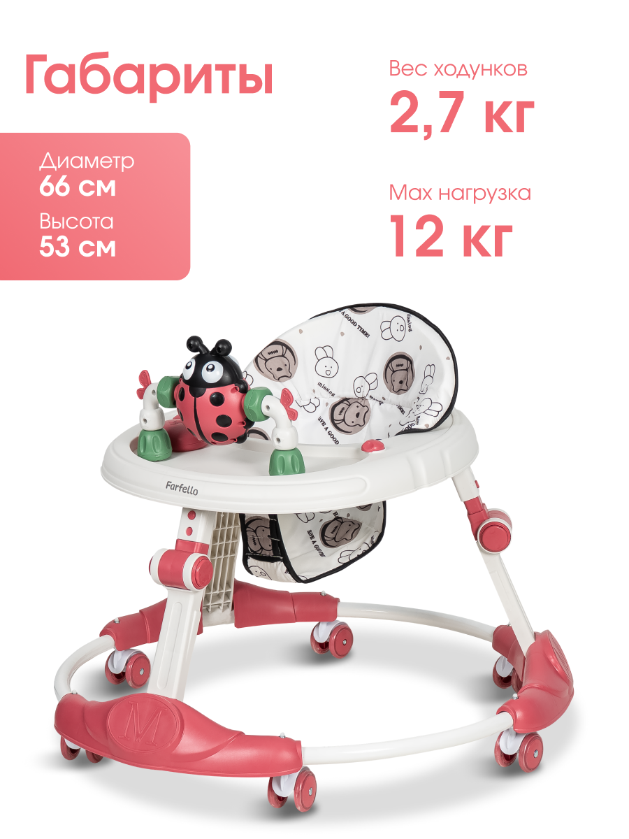 Ходунки детские Farfello A3, для детей от 6 до 18 месяцев, до 12 кг, игровая панель, цвет красный интересное: