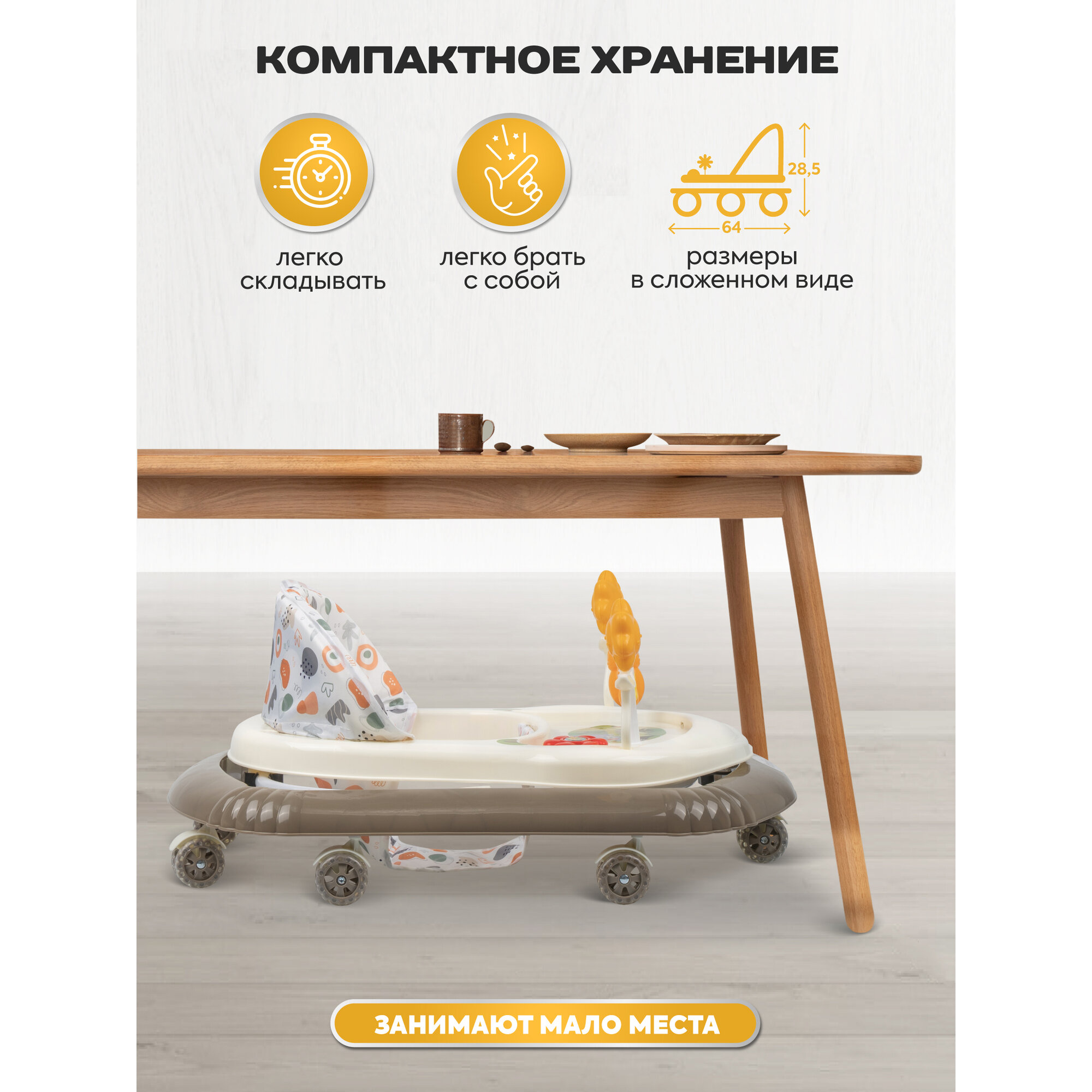 Ходунки детские музыкальные Indigo Fly C с игровой панелью, 7 силиконовых колес, бежевый интересное: