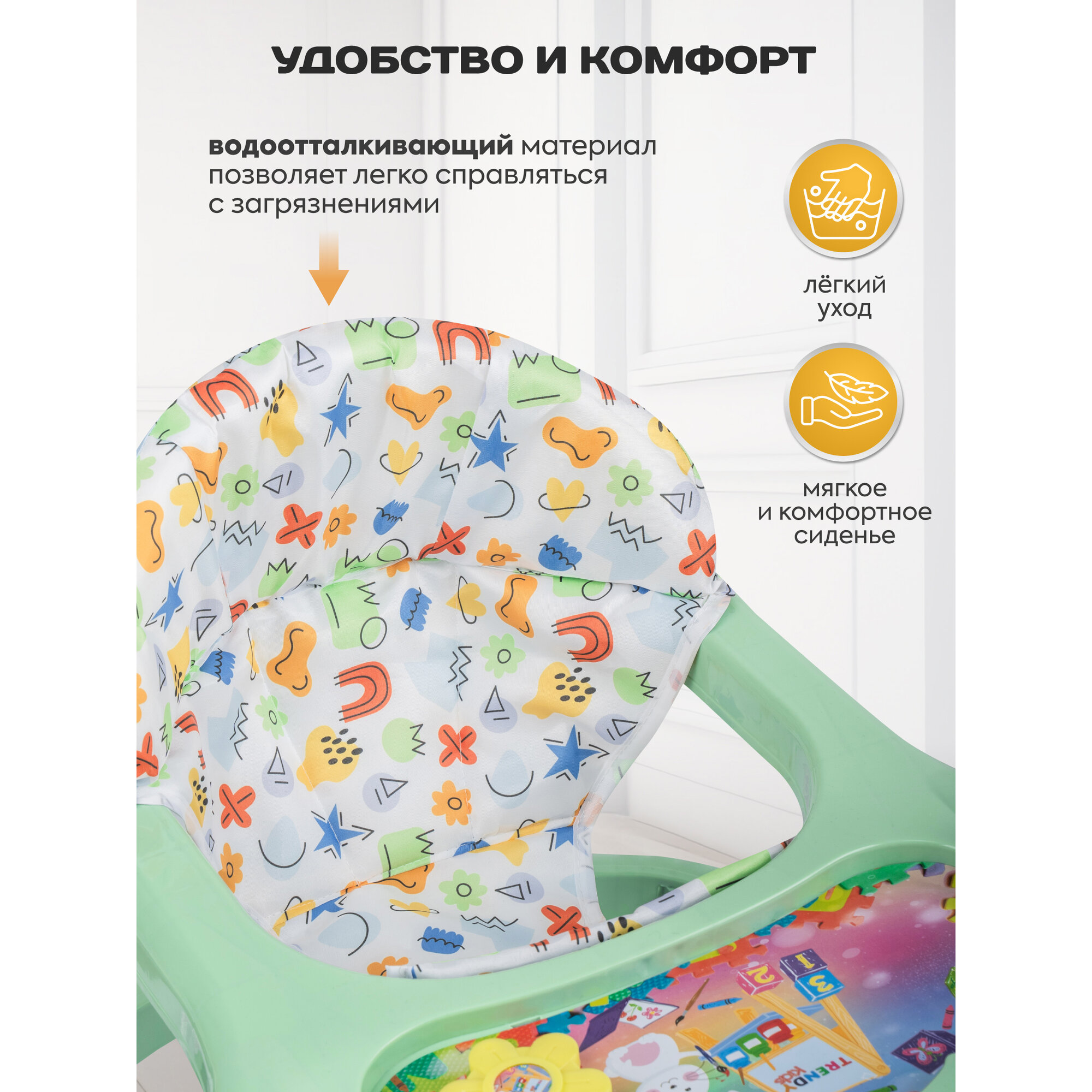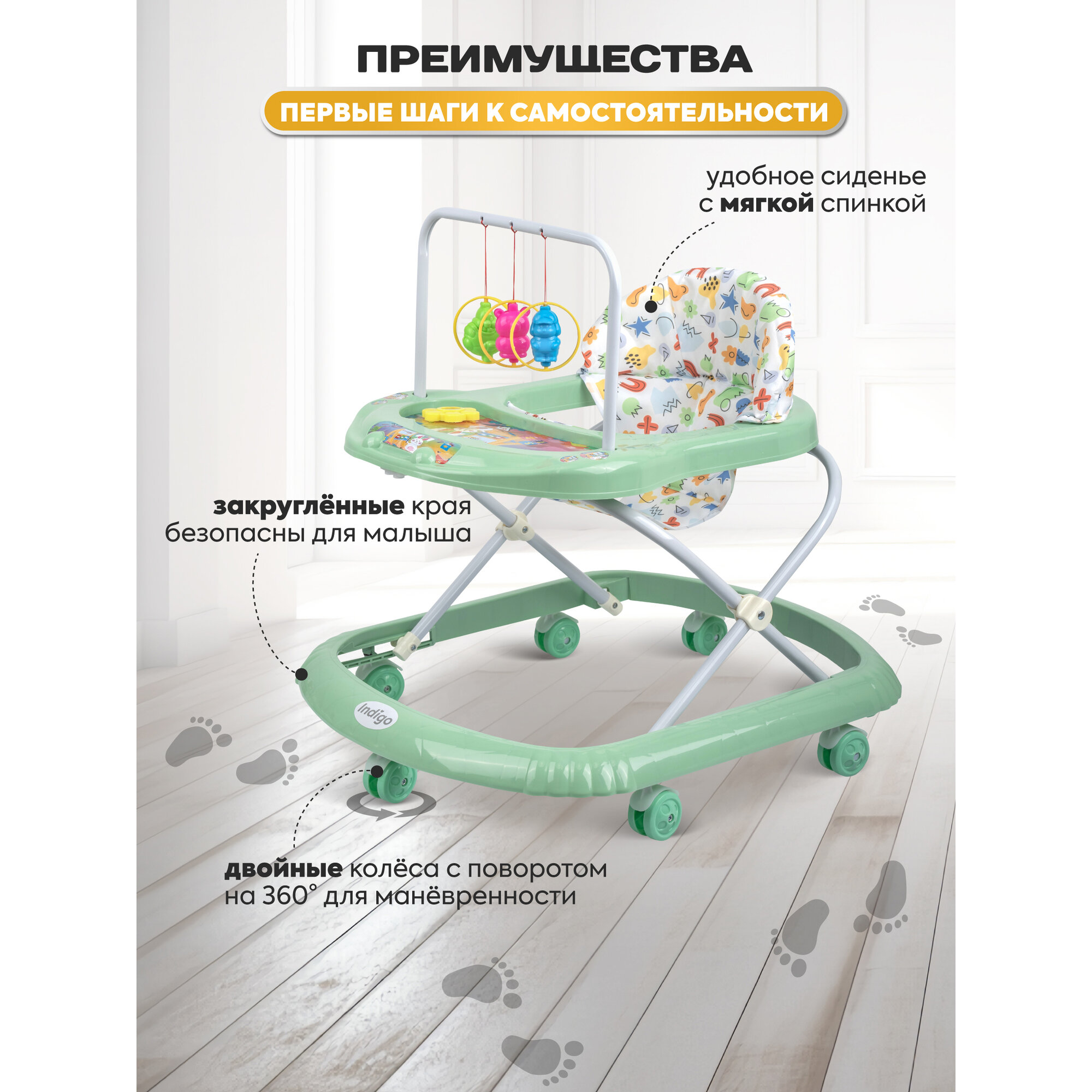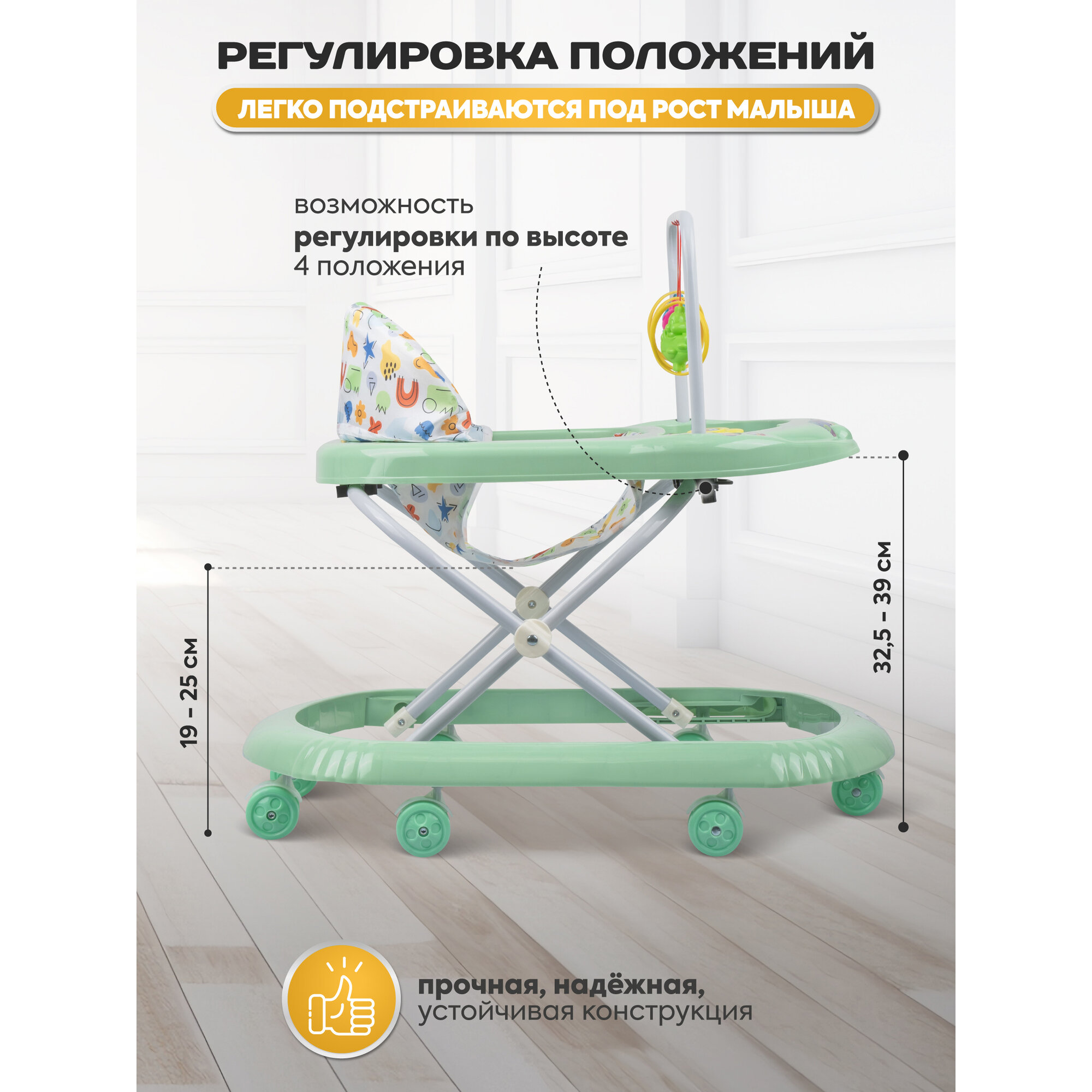 Ходунки детские музыкальные Indigo Карусельки со съемной игровой панелью, 7 колес, зеленый интересное:
