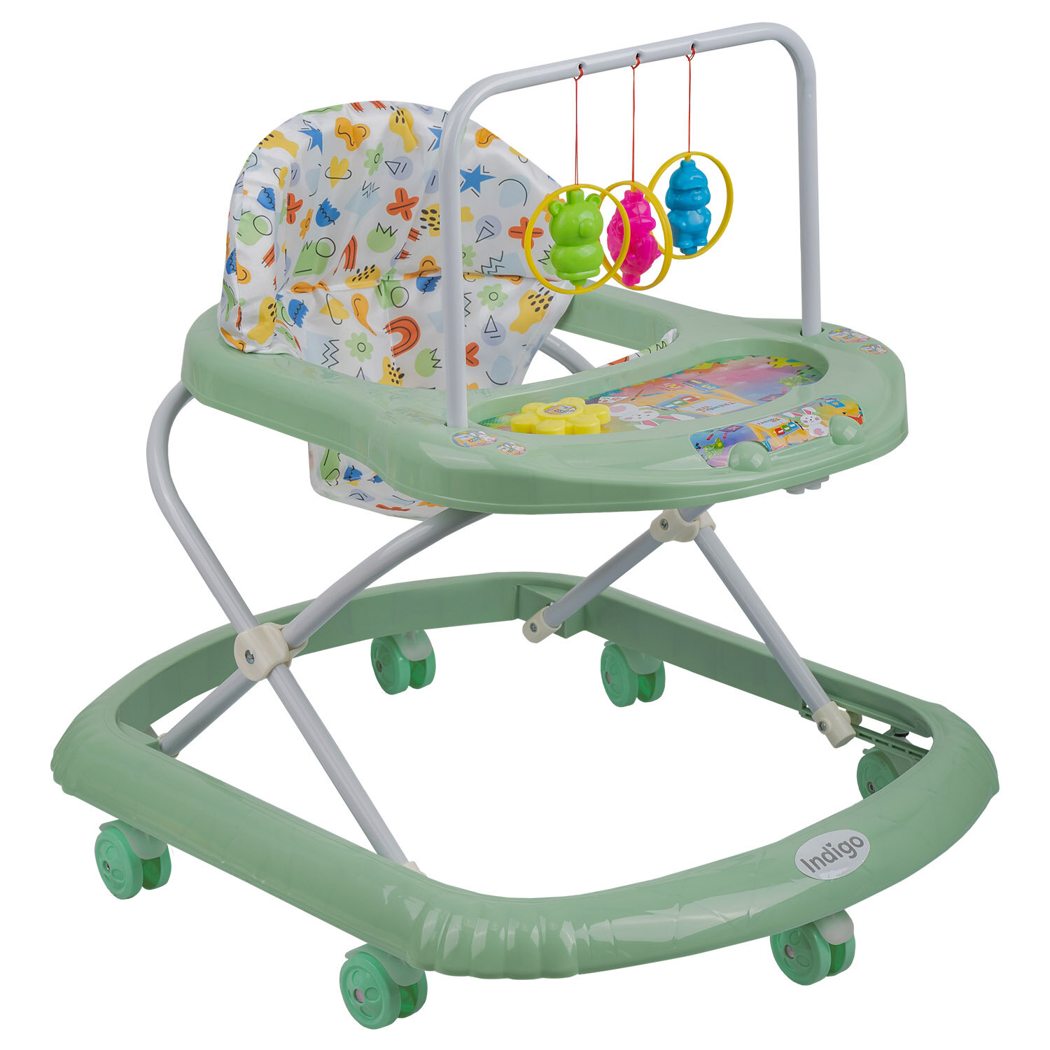 Купить Ходунки детские музыкальные Indigo Карусельки со съемной игровой панелью, 7 колес, зеленый