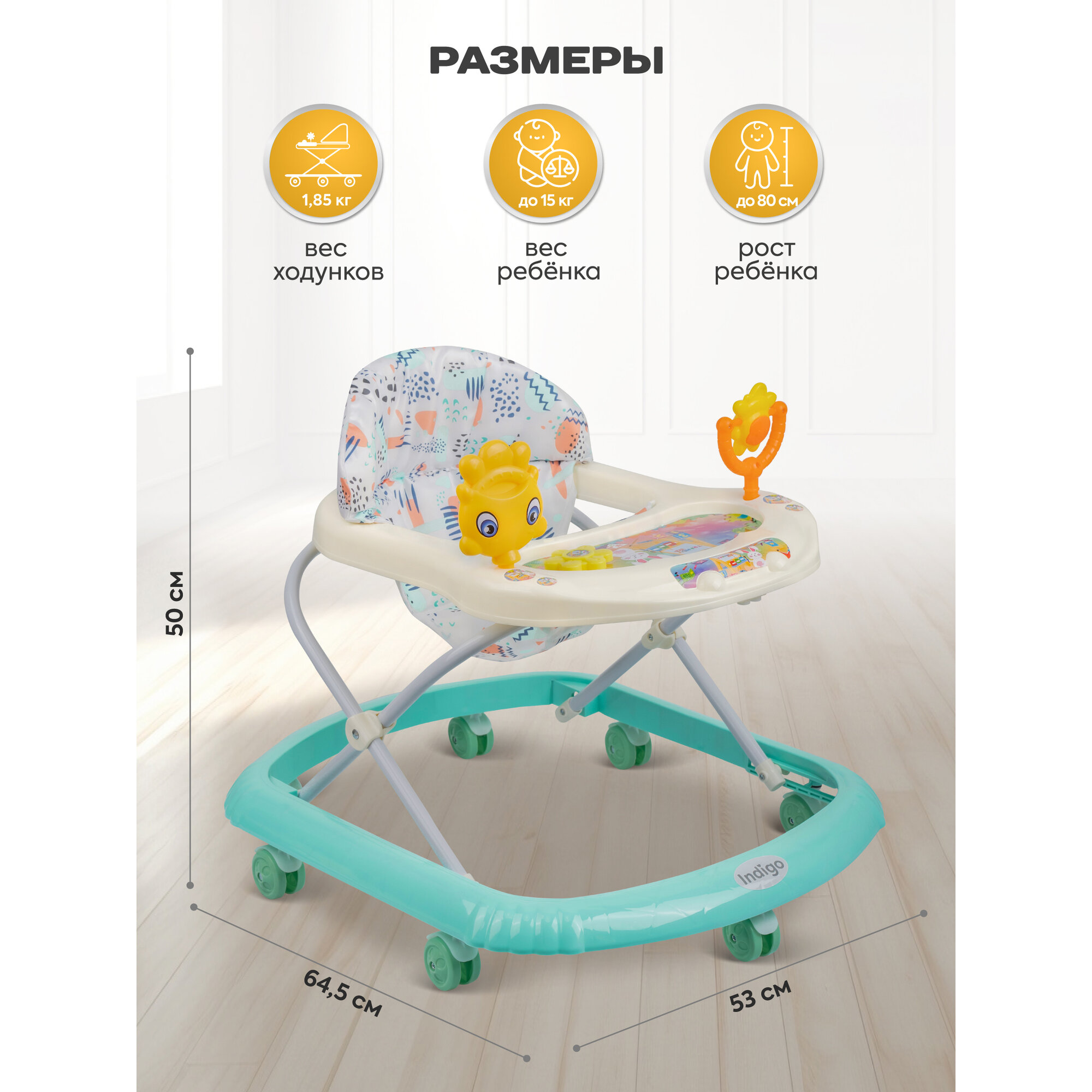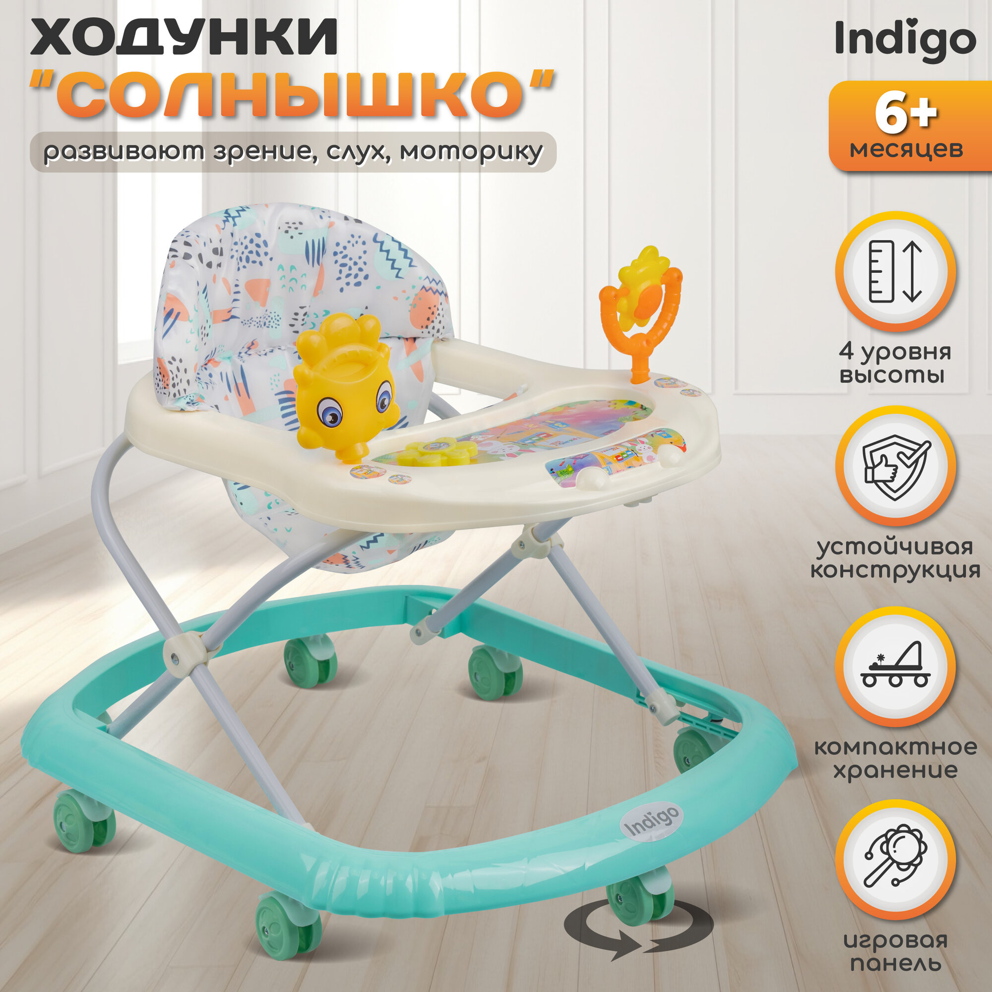 Купить Ходунки детские музыкальные Indigo Солнышко со съемной игровой панелью, 7 колес, бирюзовый