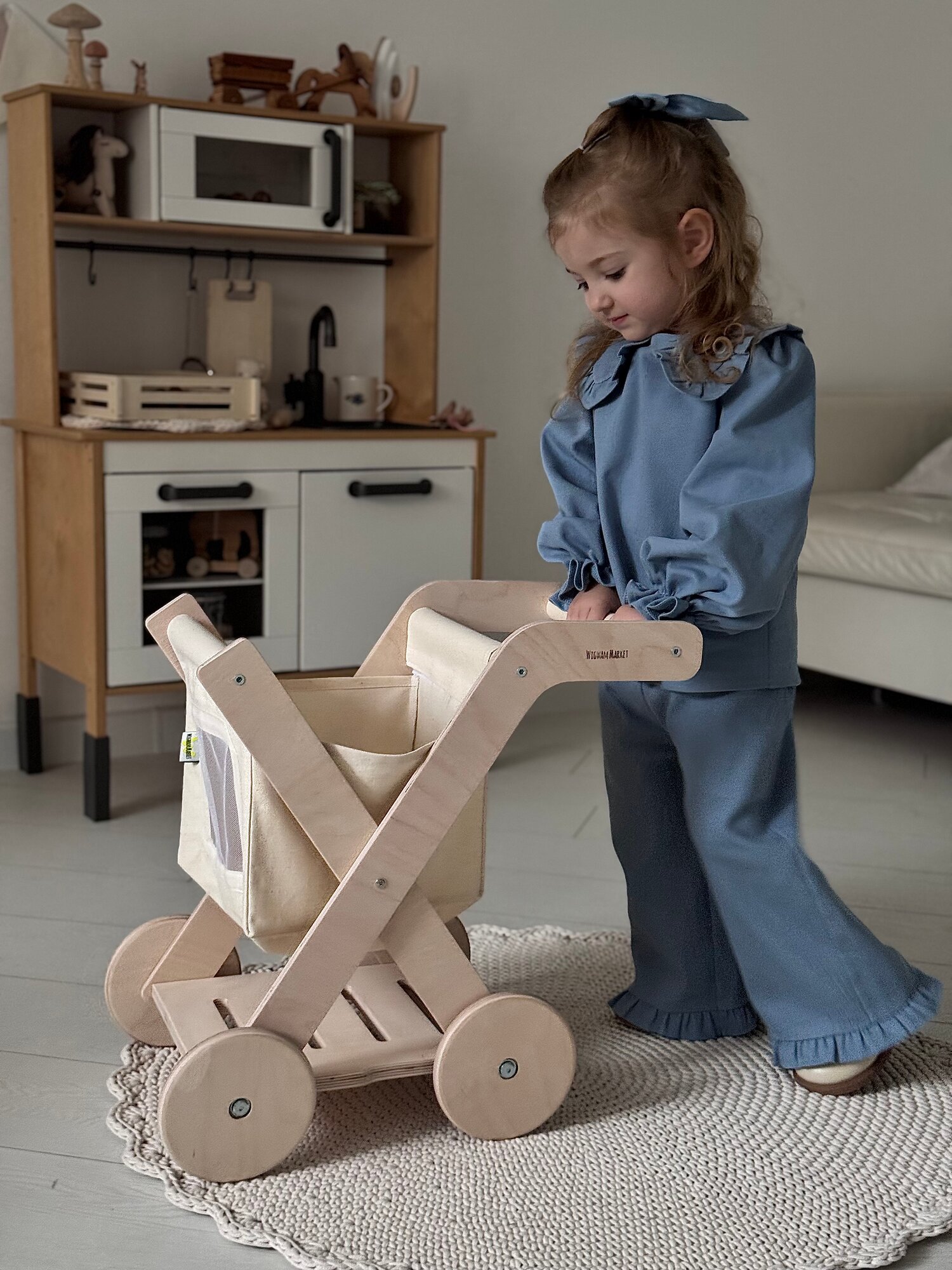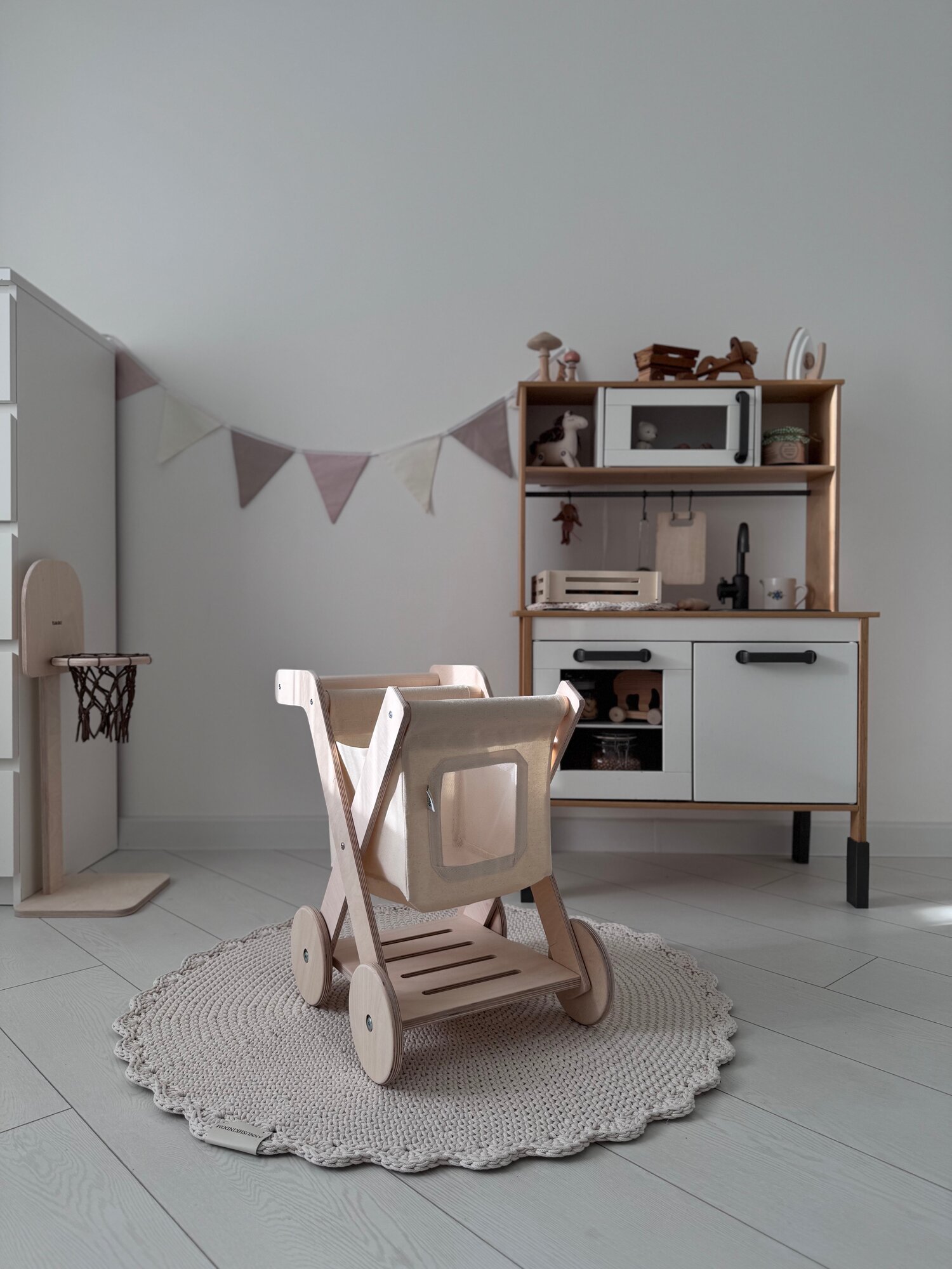 Купить Тележка каталка детская деревянная, ходунки, развивающая игрушка