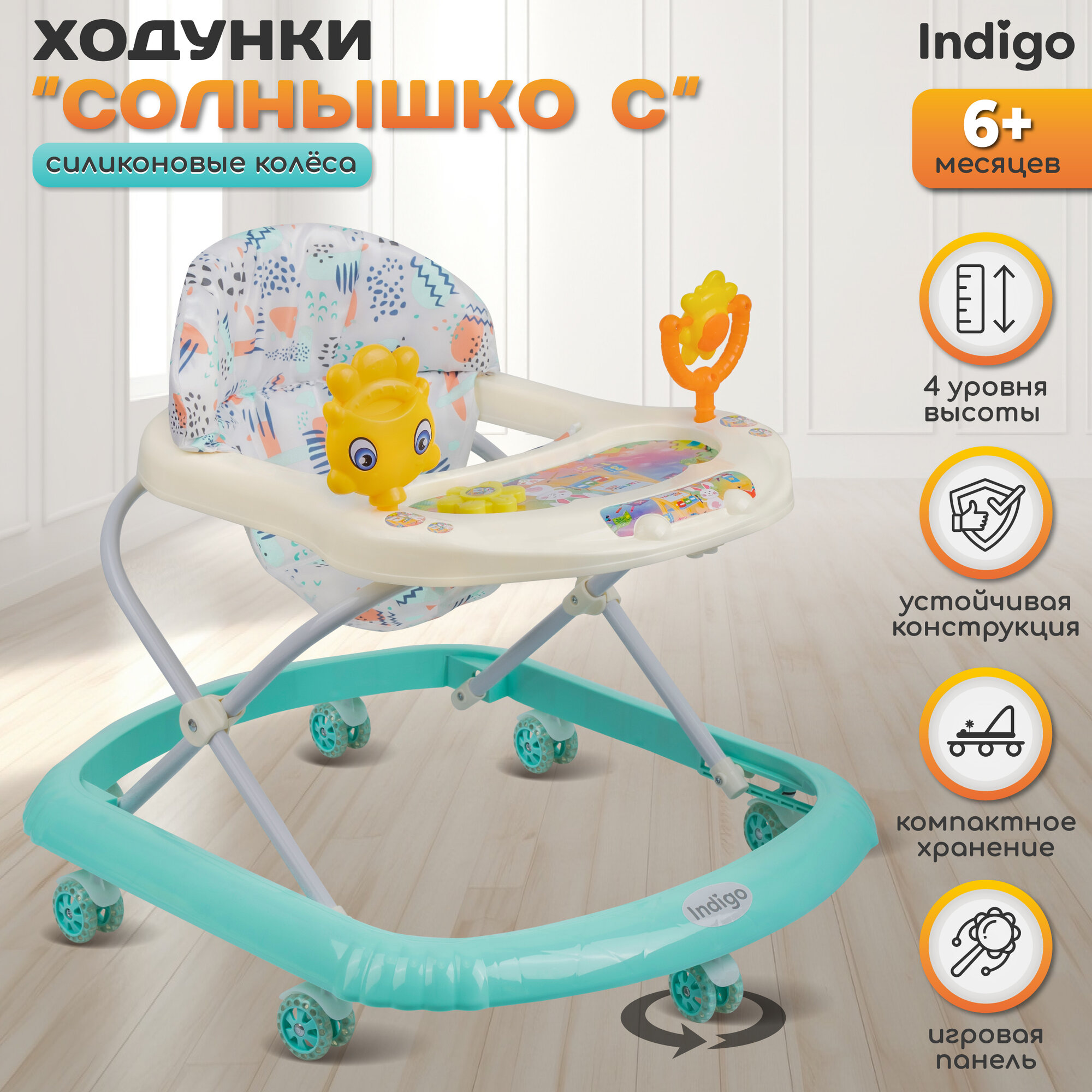 Купить Ходунки детские музыкальные Indigo Солнышко C со съемной игровой панелью, 7 силиконовых колес, бирюзовый