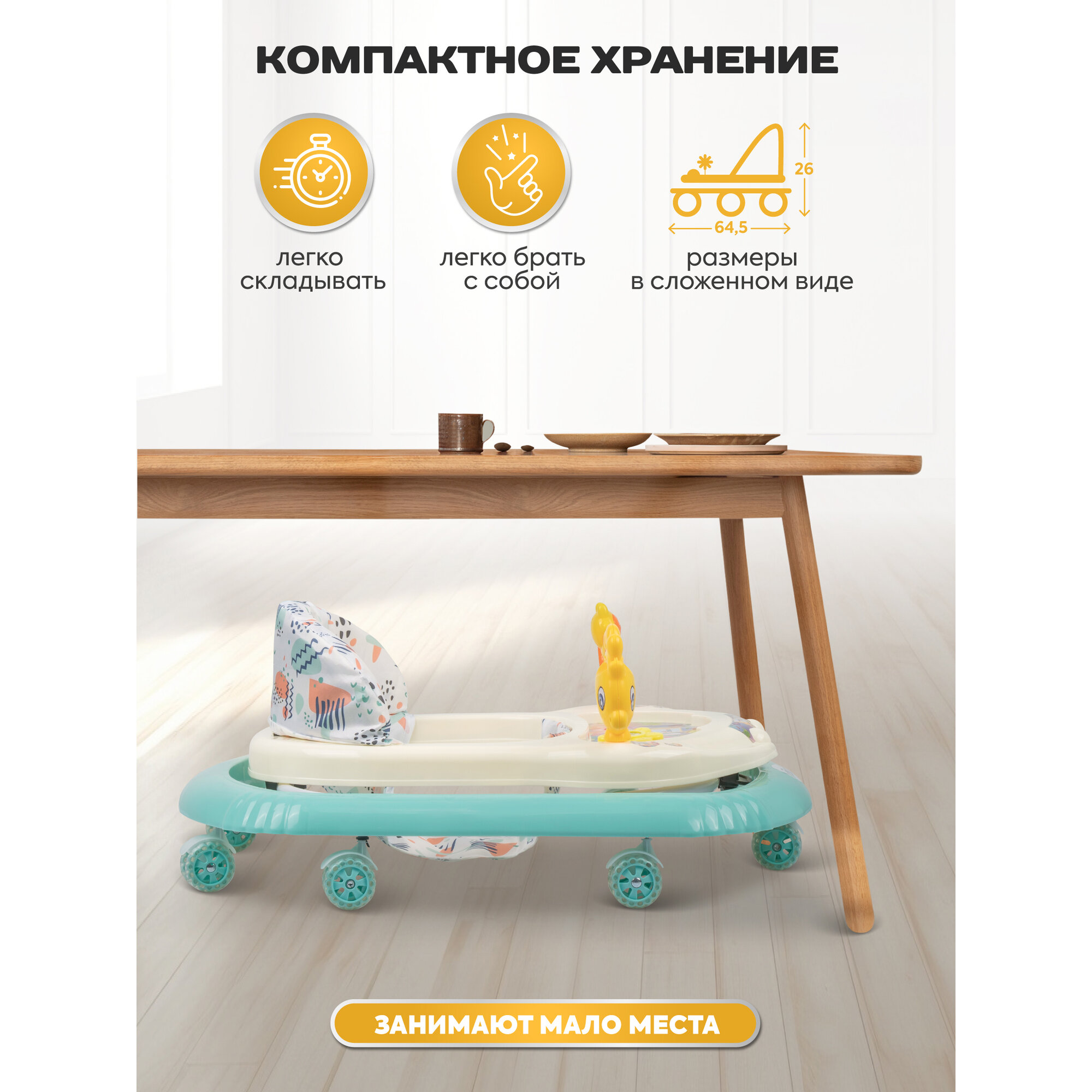 Ходунки детские музыкальные Indigo Солнышко C со съемной игровой панелью, 7 силиконовых колес, бирюзовый интересное:
