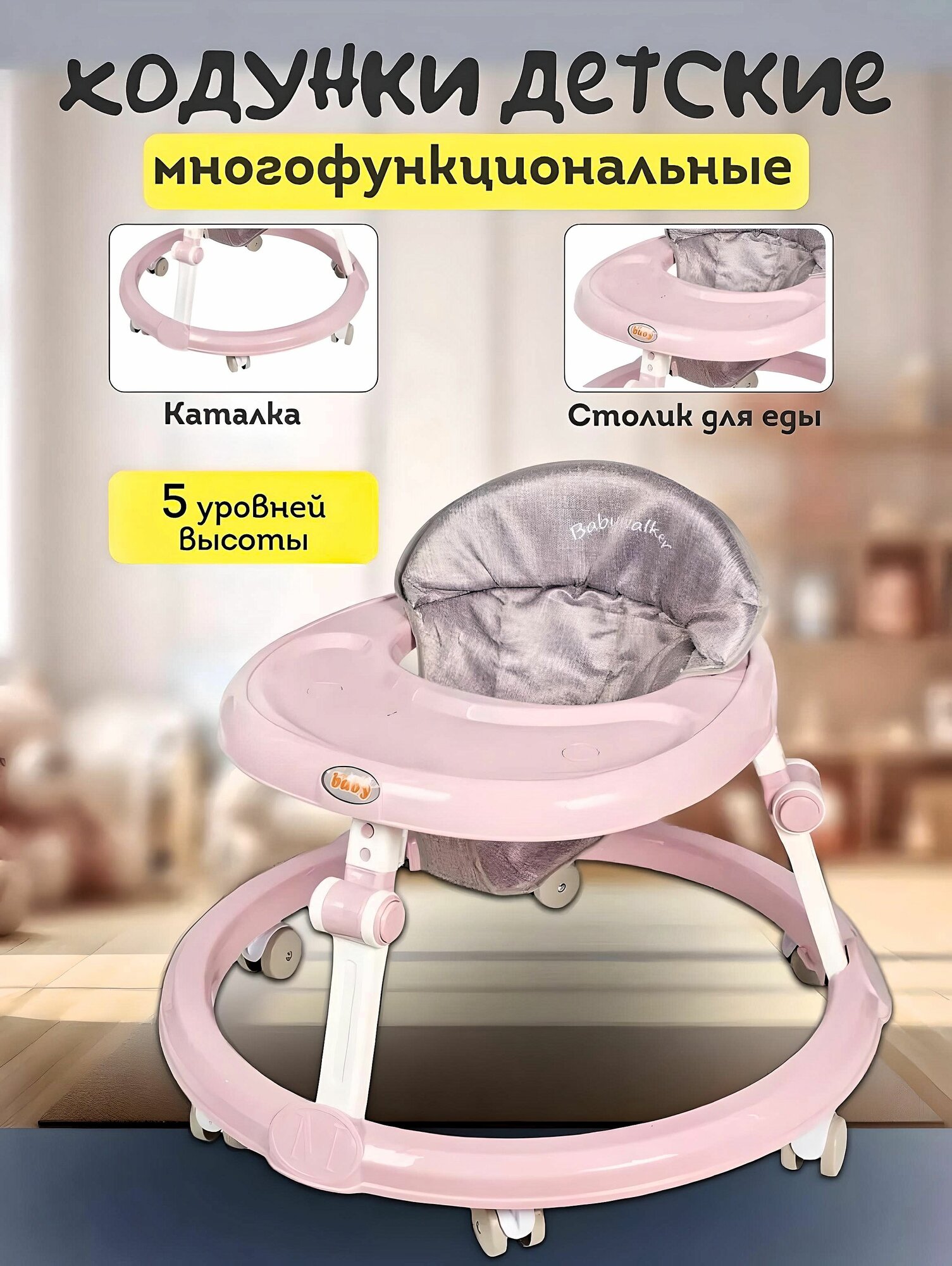 Ходунки "Развивающие", голубой/розовый, зеленый , металл, пластик, детские, 6-12 мес, 6 колес, нагрузка до 15 кг интересное: