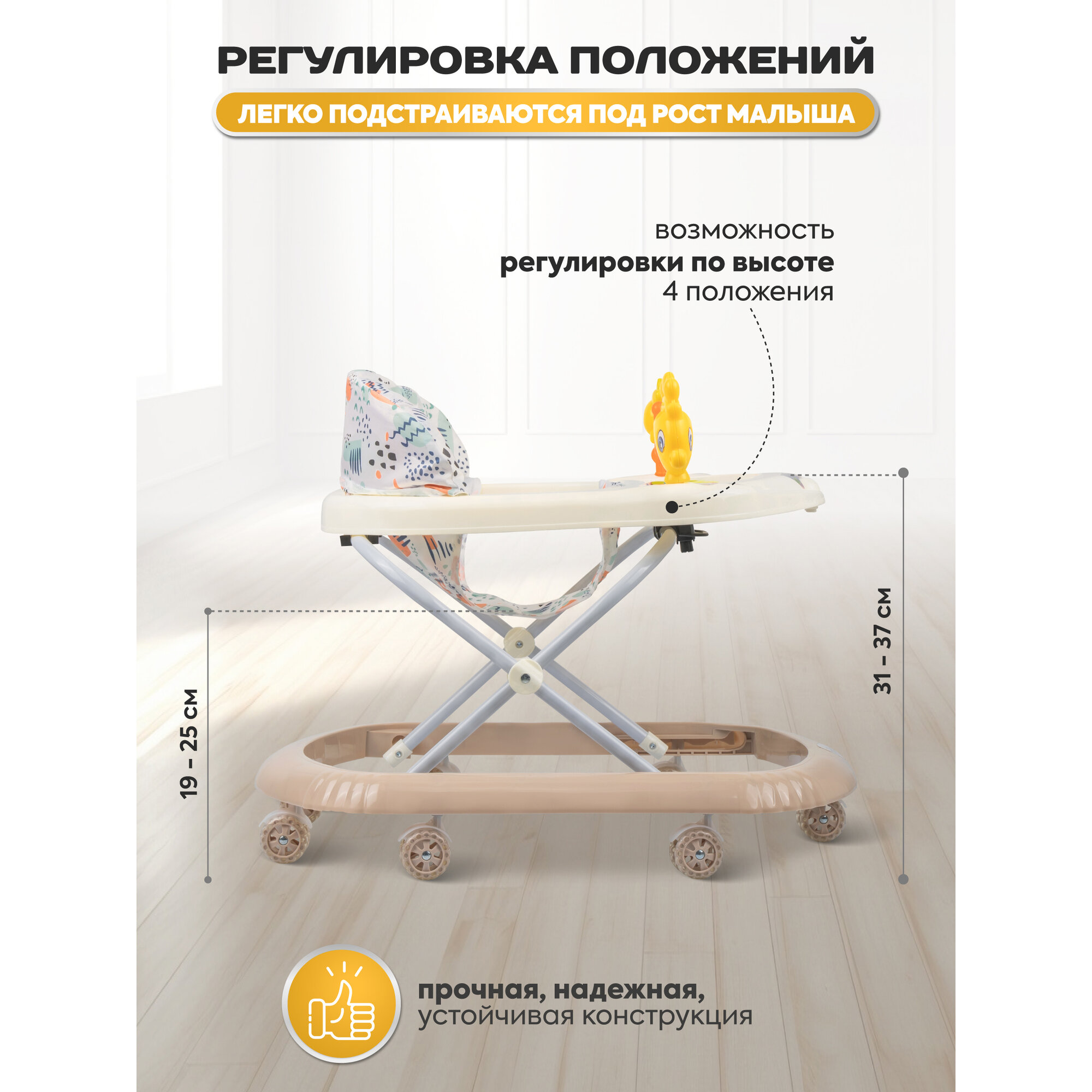 Купить Ходунки детские музыкальные Indigo Солнышко C со съемной игровой панелью, 7 силиконовых колес, бежевый