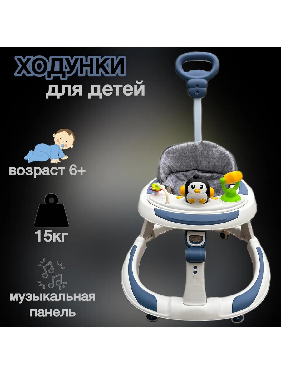 Ходунки для малышей, с родительской ручкой, от 7 месяцев, нагрузка до 15кг интересное: