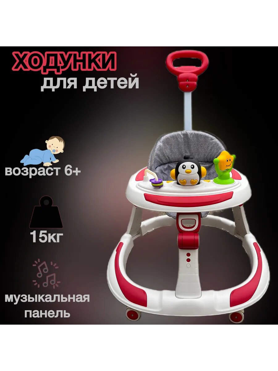 Купить Ходунки, с родительской ручкой, свето-звуковые эффекты, красные