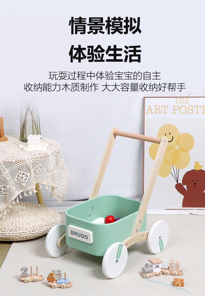 Ходунки-тележка Walker fruit, для раннего образования, многофункциональные, деревянные, зеленые, 4,2 кг