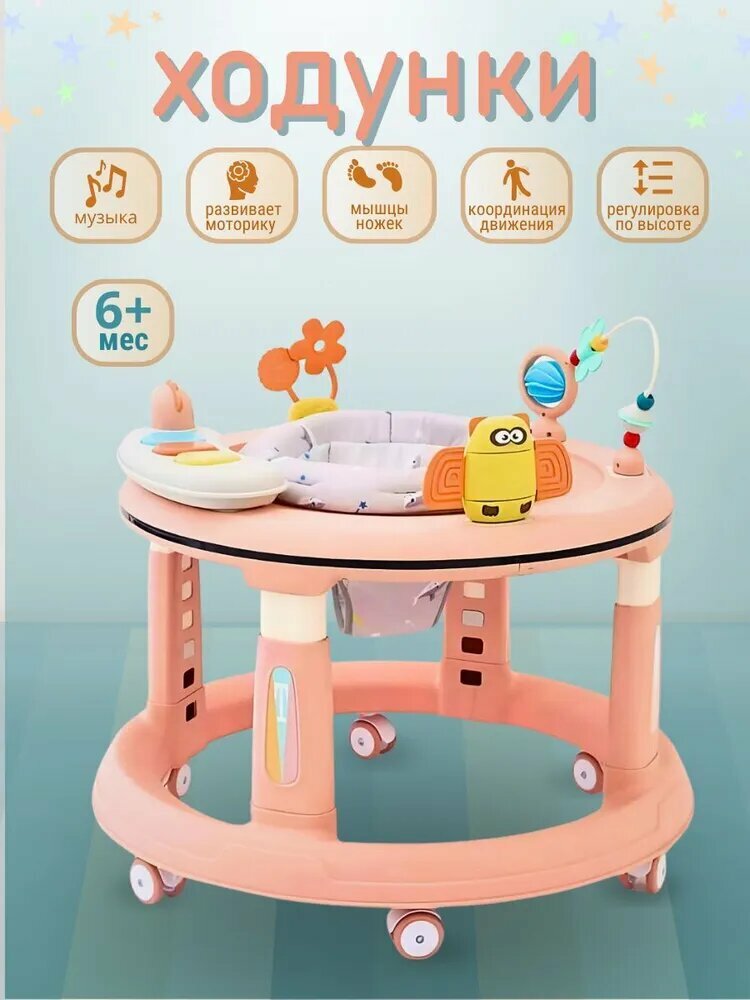 Ходунки детские, с музыкальной панелью, ABS пластик, розовые интересное: