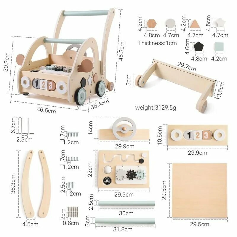 Ходунки детские, дерево, развивающие игрушки, 2 колеса, 1-3 лет, унисекс, светло-зеленые интересное: