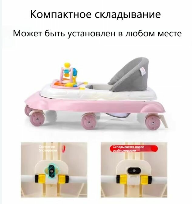 Детские ходунки с легкой игровой музыкальной панелью, защитой от опрокидывания, предохранительным тормозом интересное: